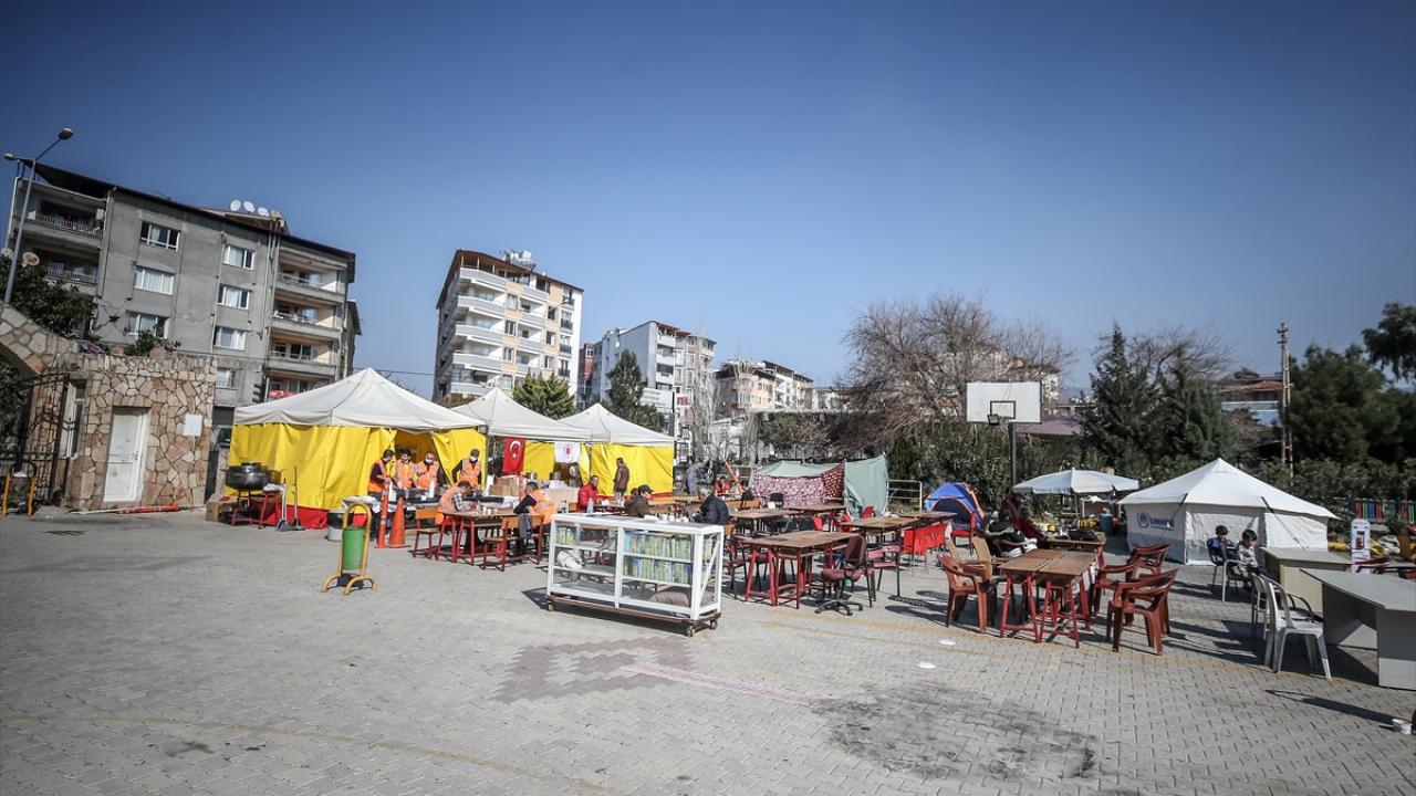 Kahramanmaraş merkezli depremlerden en fazla etkilenen illerden Hatay'a gelen TBMM aşçıları, Defne ilçesinde okul bahçesine kurdukları mutfakta her gün 3 öğün sıcak yemek pişiriyor.
