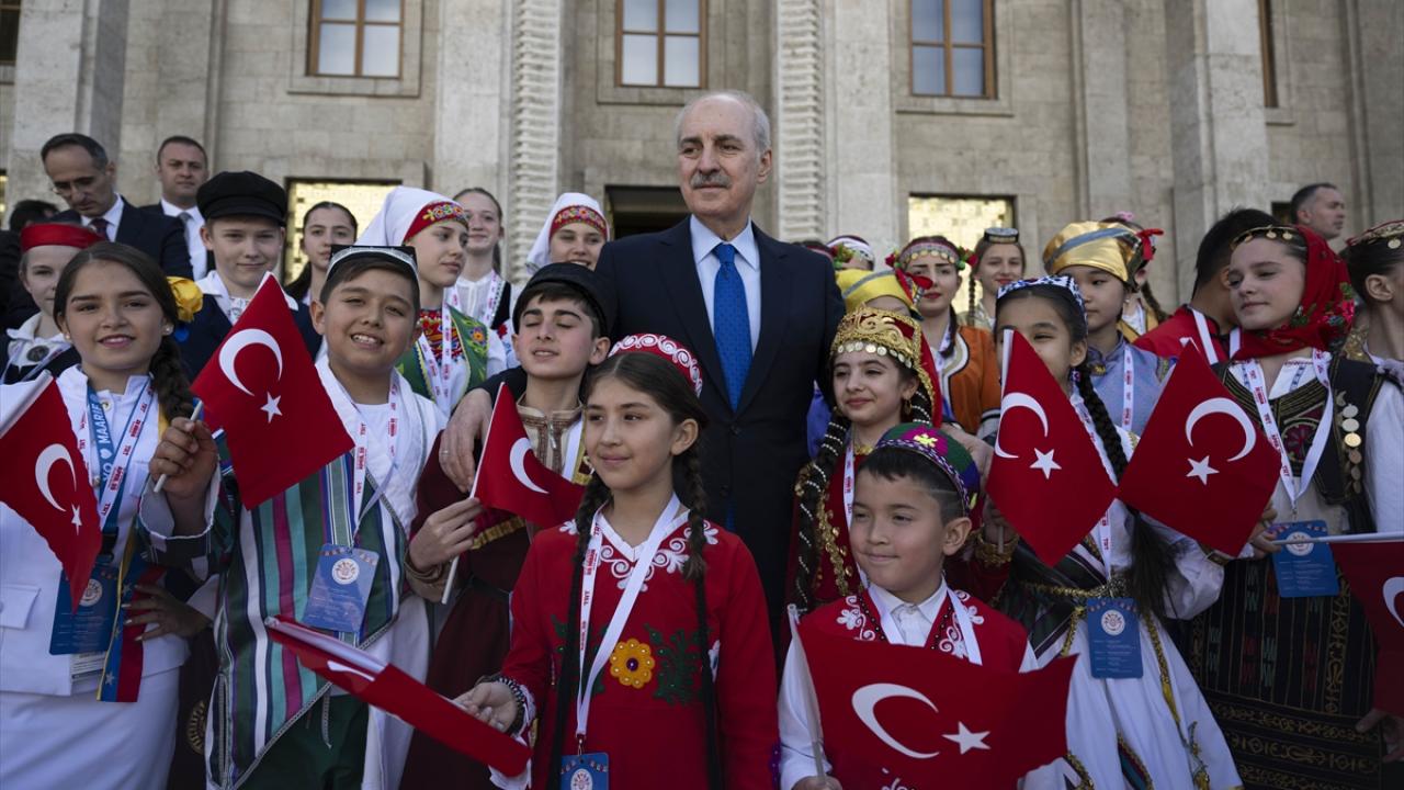 Kurtulmuş, TRT 46. Uluslararası 23 Nisan Çocuk Şenliği kapsamında 28 ülkeden Türkiye`ye gelen dünya çocuklarını TBMM Tören Salonu`nda kabul etti.