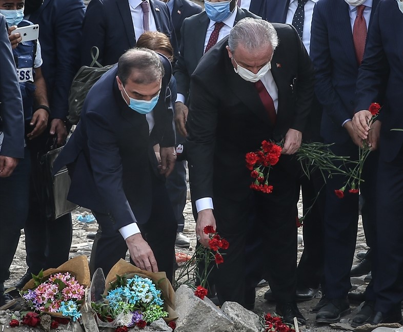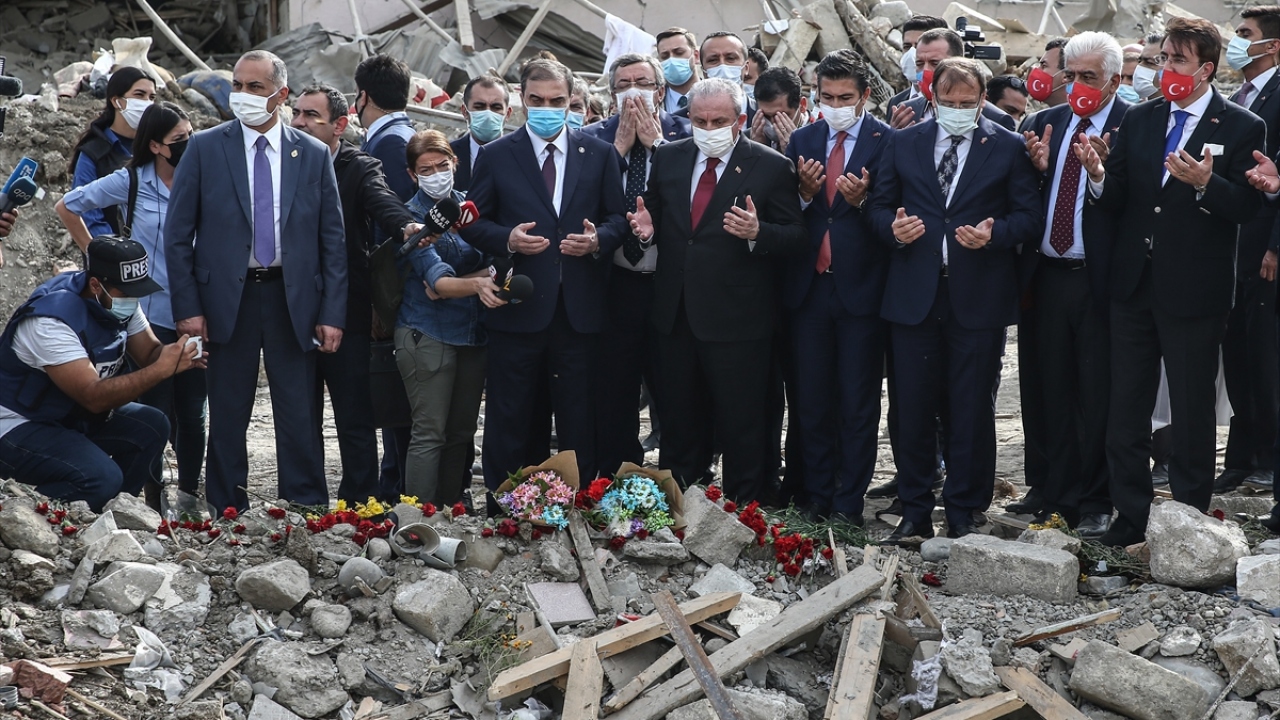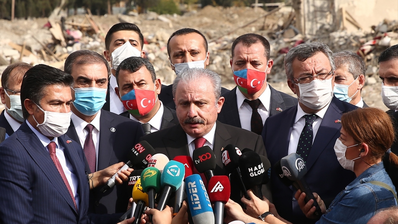 TBMM Başkanı Mustafa Şentop, Azerbaycan'ın Gence kentinde Ermenistan ordusunun saldırılarına hedef olan sivil yerleşim bölgesini ziyaret etti.
