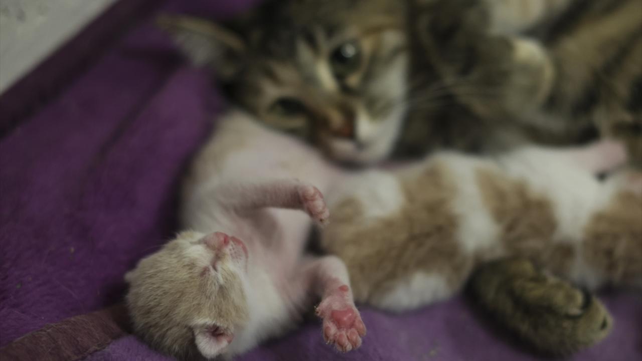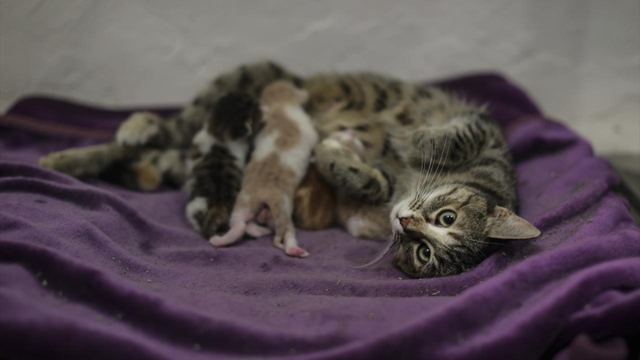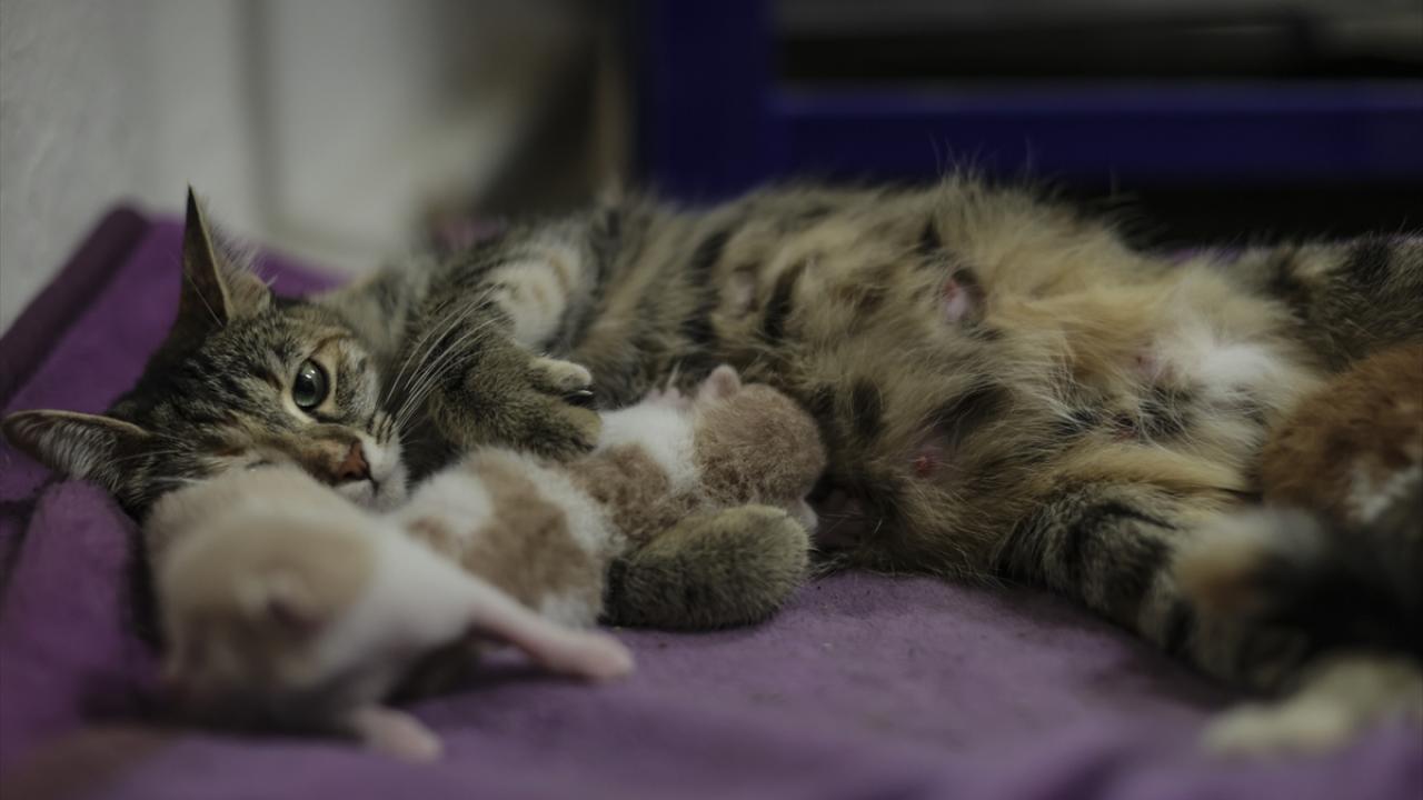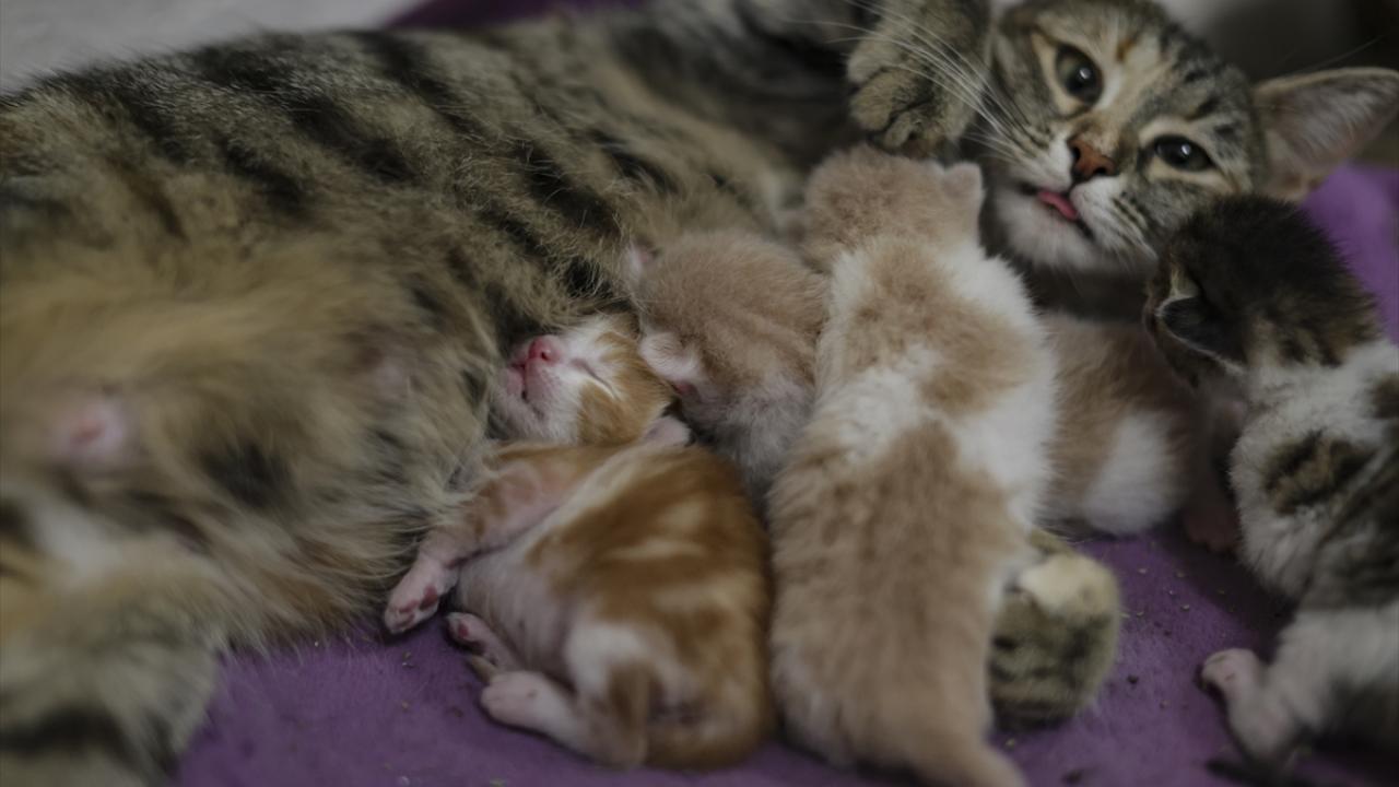 Kedilerin ihtiyaçları doğrultusunda beslenmelerini ve bakımlarını günlük takip eden ekipler, yeni doğum yapmış bir anne kedi ve yavrularıyla da özel ilgileniyor.