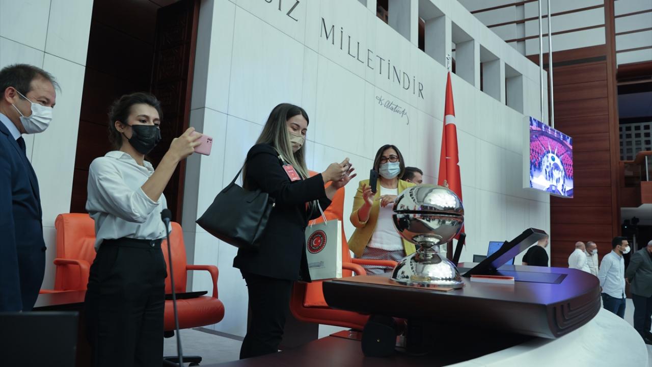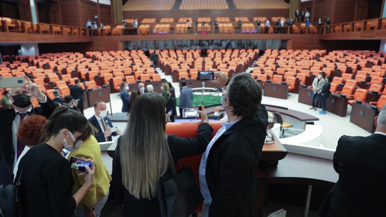 Kumbuzoğlu, tadilat çalışmaları tamamlanan TBMM Genel Kurul Salonu`nu gazetecilerle birlikte gezerek bilgi verdi.