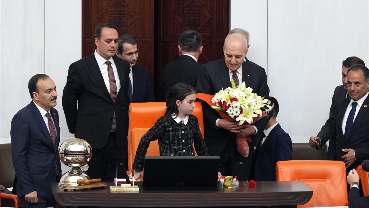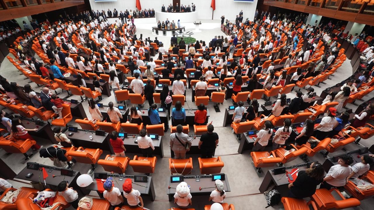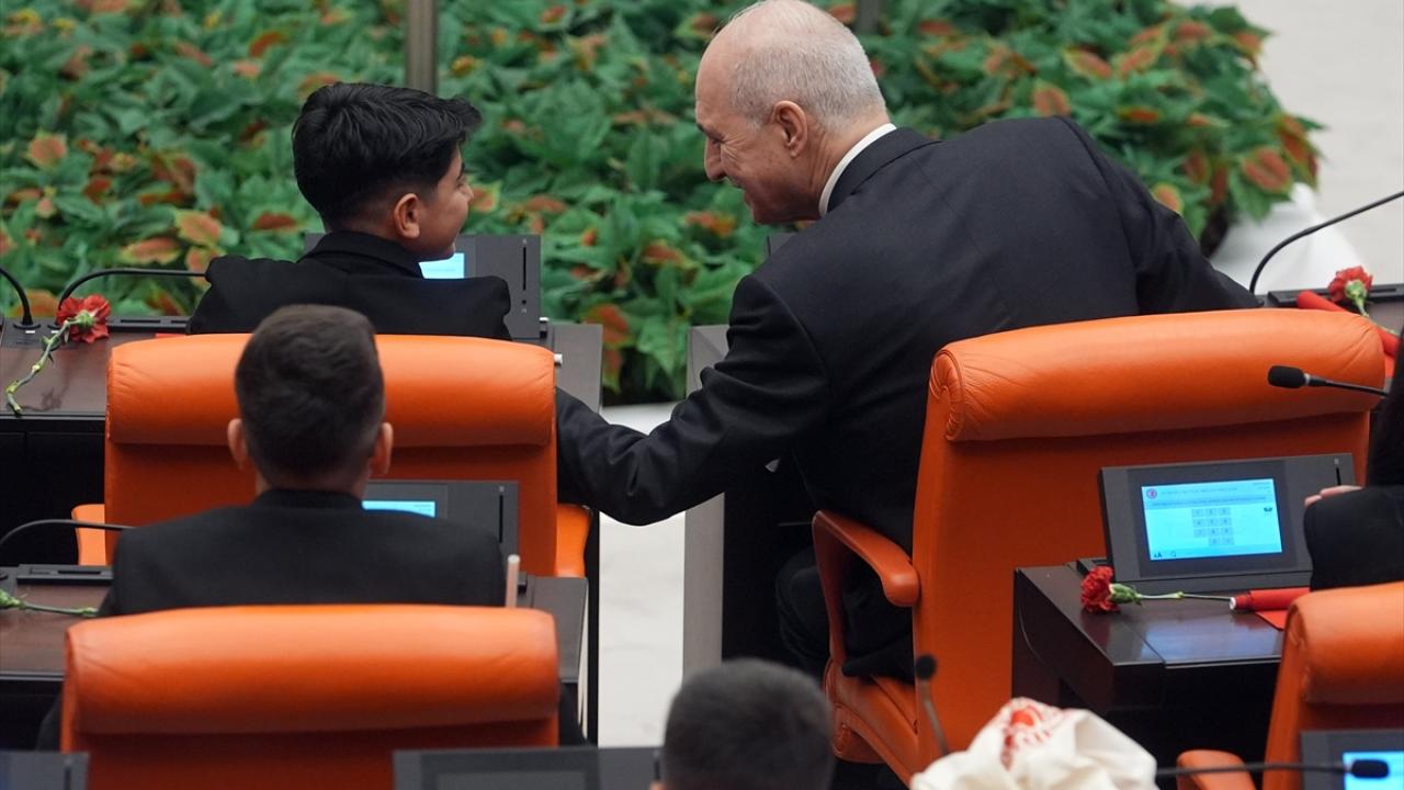 TBMM Başkanı Numan Kurtulmuş`un oturumun açılışını yapmasının ardından Başkanlık Divanı, oturumu yönetecek çocuk başkana ve çocuk katip üyelere devredildi.