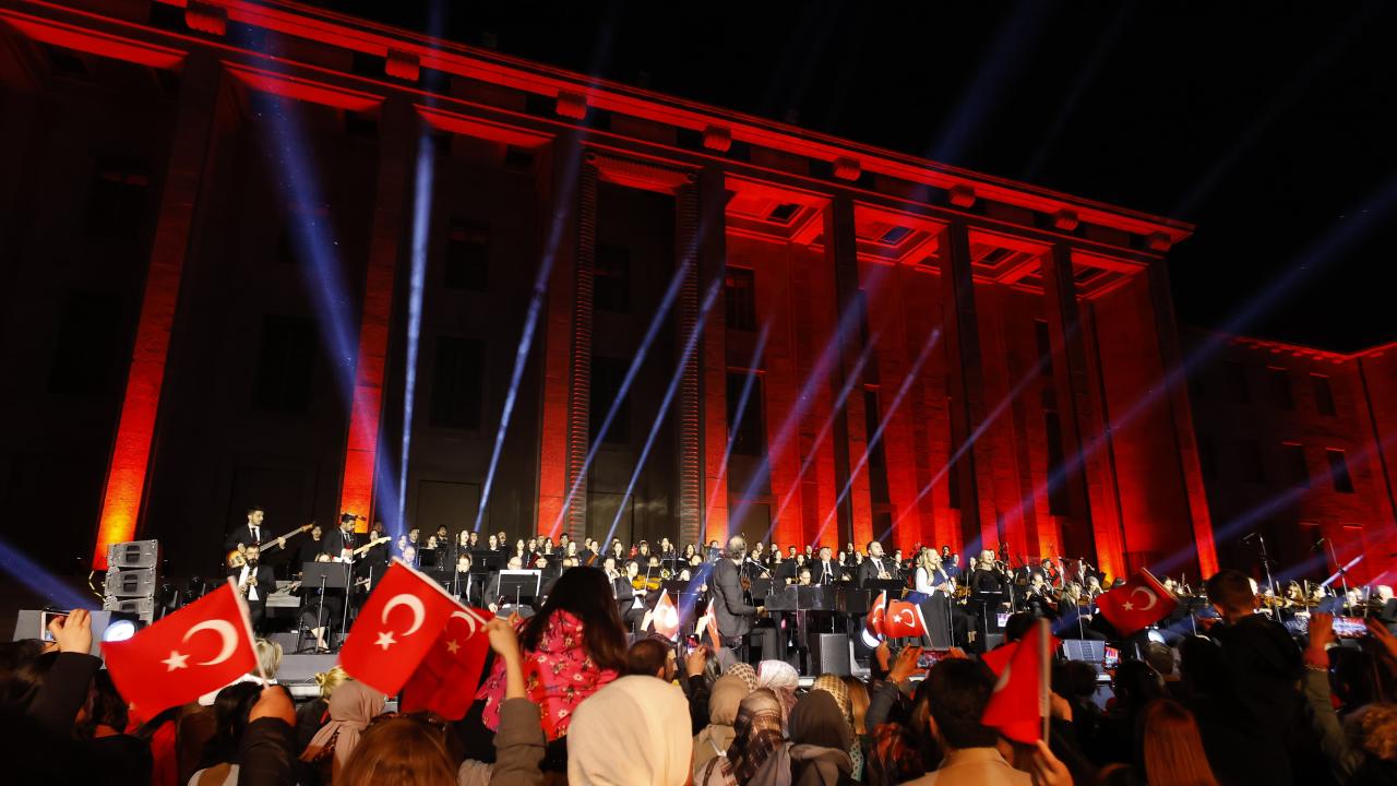 Meclis Şeref Kapısı önünde düzenlenen, AK Parti İstanbul Milletvekili ve besteci Yücel Arzen Hacıoğulları ile 150 kişiden oluşan Türkiye Yüzyılı Orkestra ve Korosunun konseri, İstiklal Şairi Mehmet Akif Ersoy`un Çanakkale Şehitlerine şiiriyle başladı.