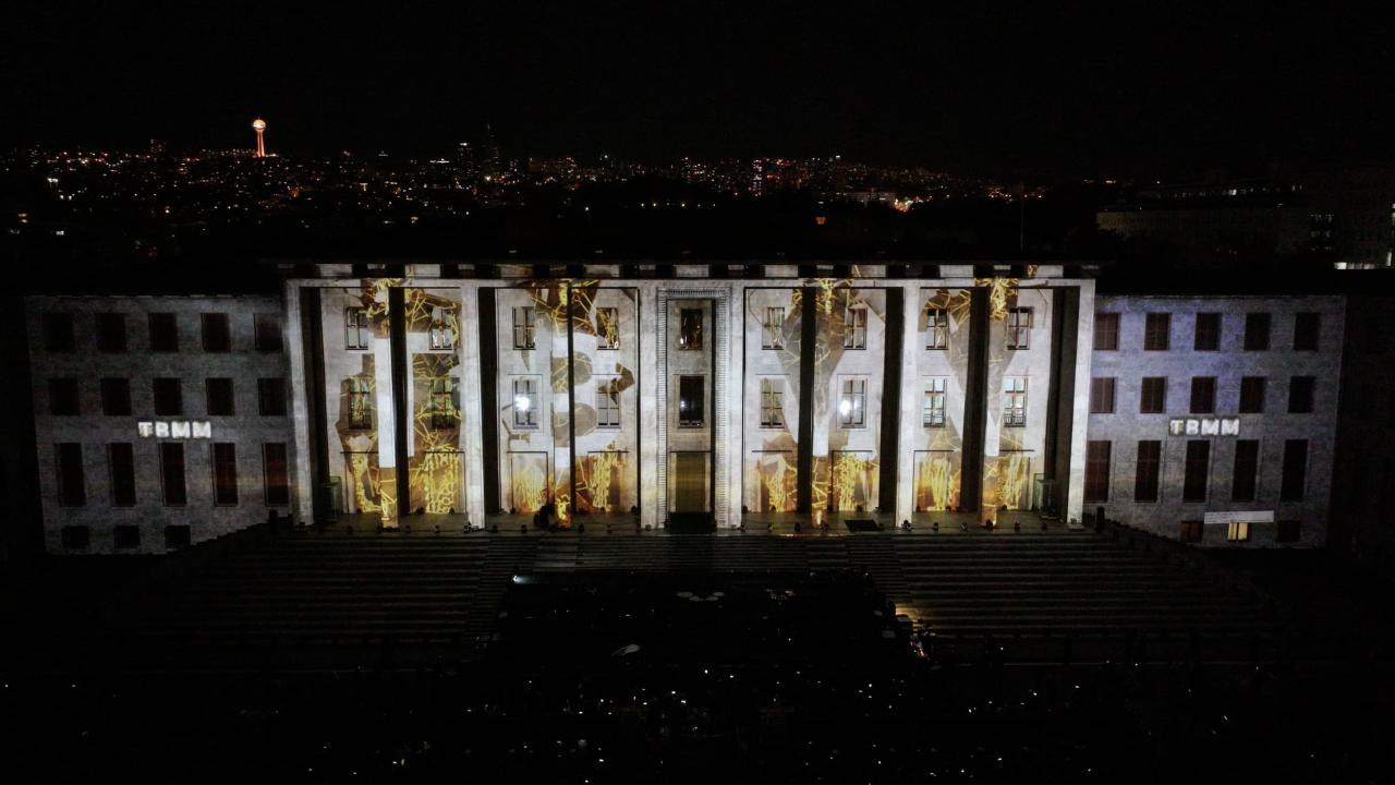 Gösteriyle, 1071`den 2024`e kadar geçen zaman, Meclis ana binasının yüzeyine yansıtıldı.