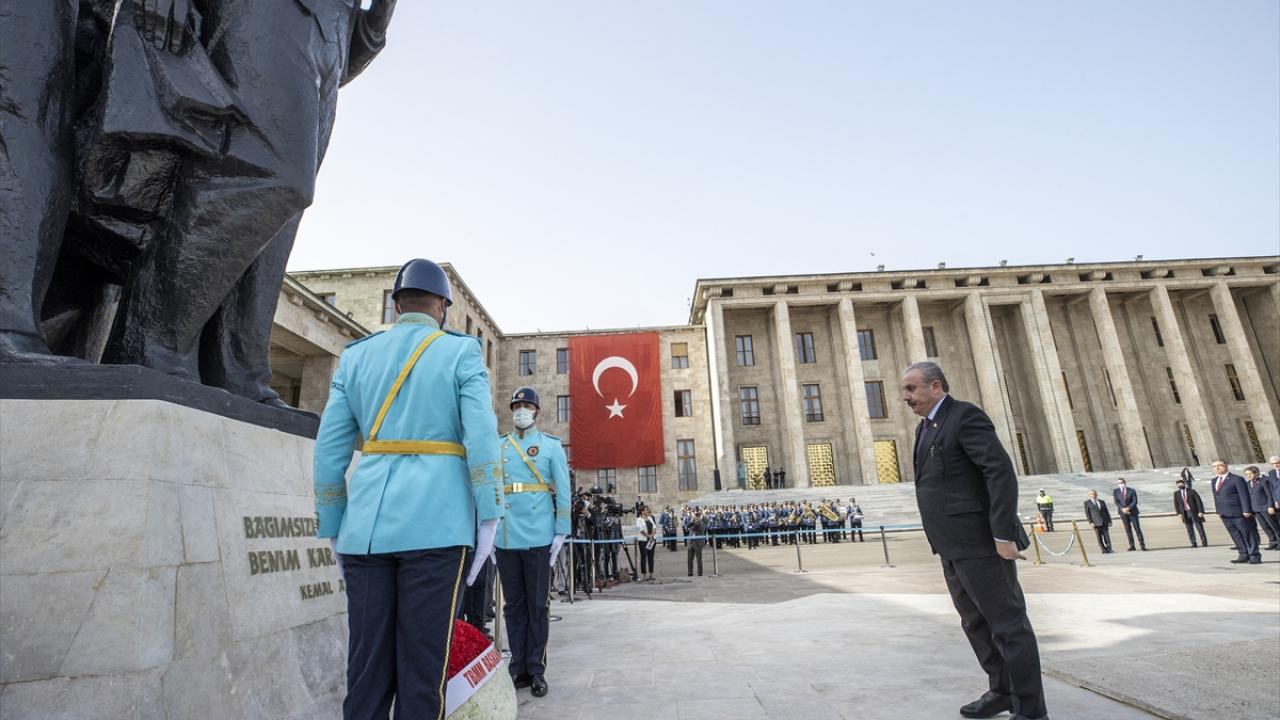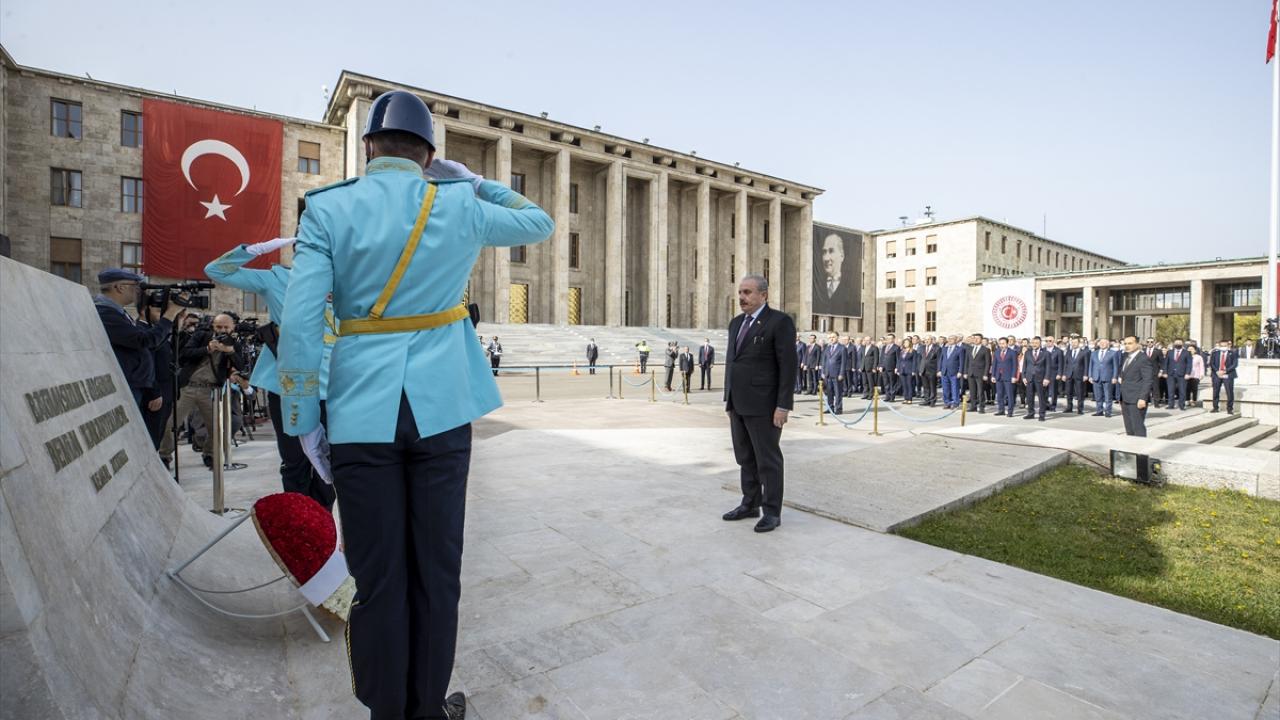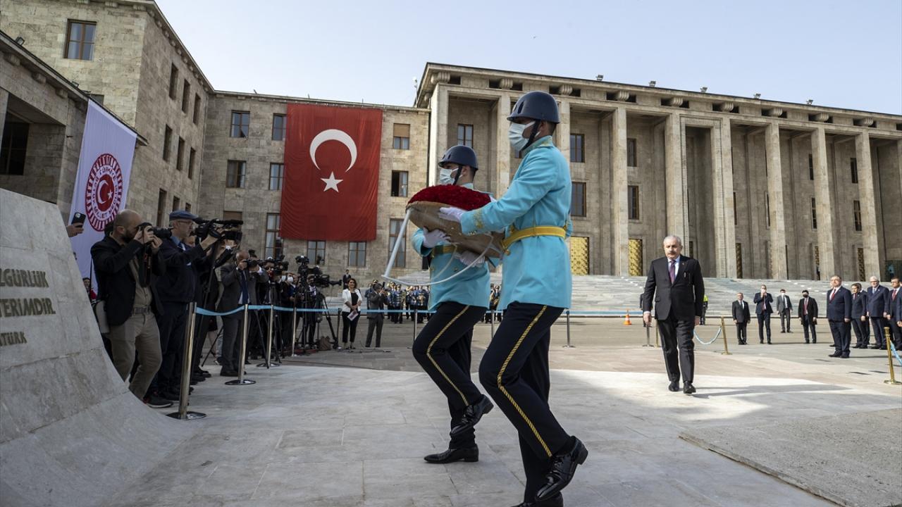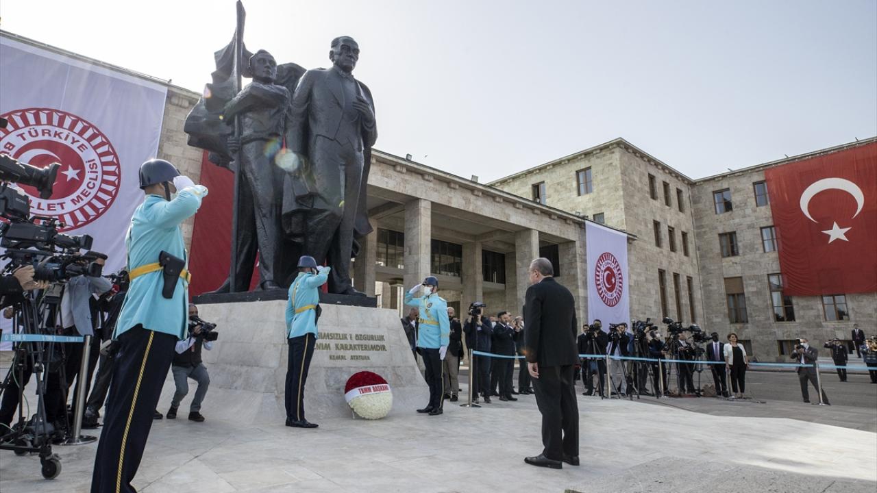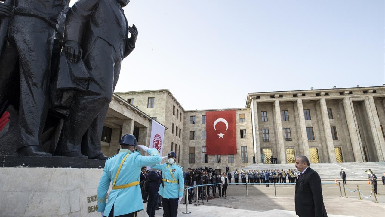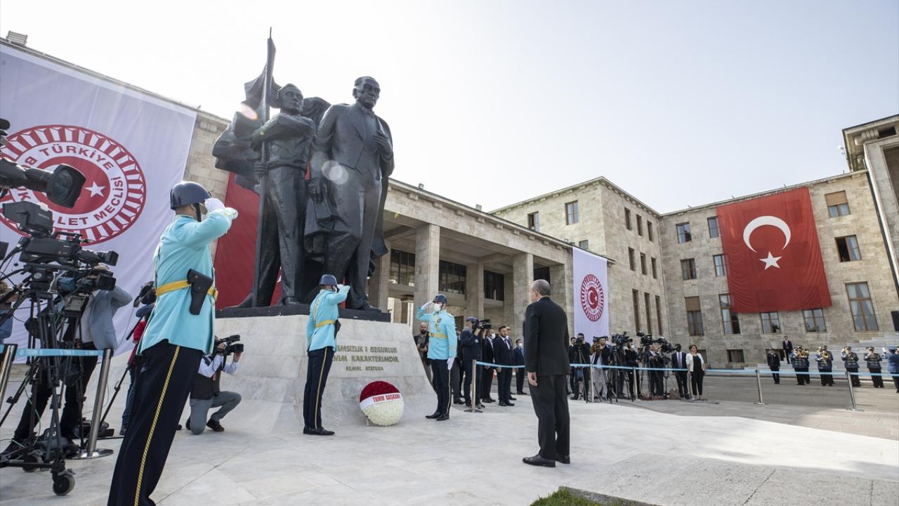 TBMM'nin açılışının 102. yılı ile 23 Nisan Ulusal Egemenlik ve Çocuk Bayramı dolayısıyla Meclis'teki Atatürk Anıtı önünde tören düzenlendi.
