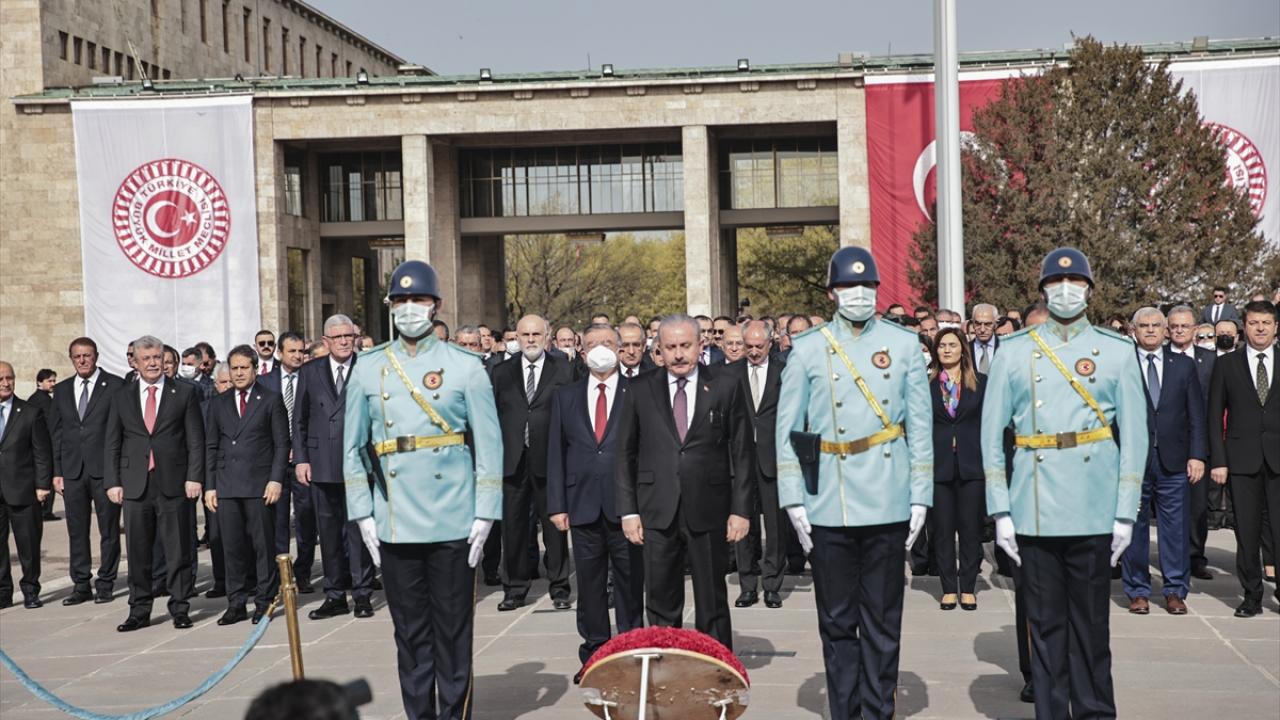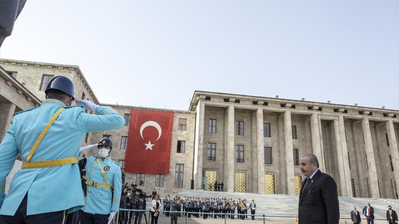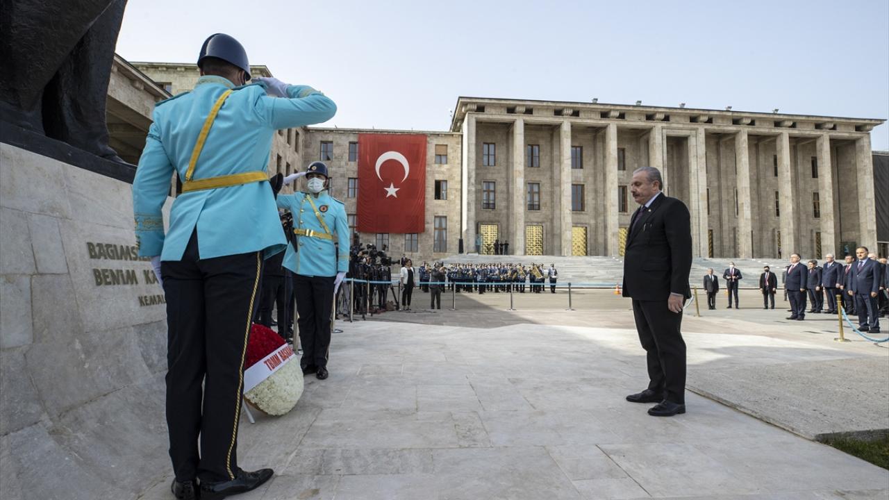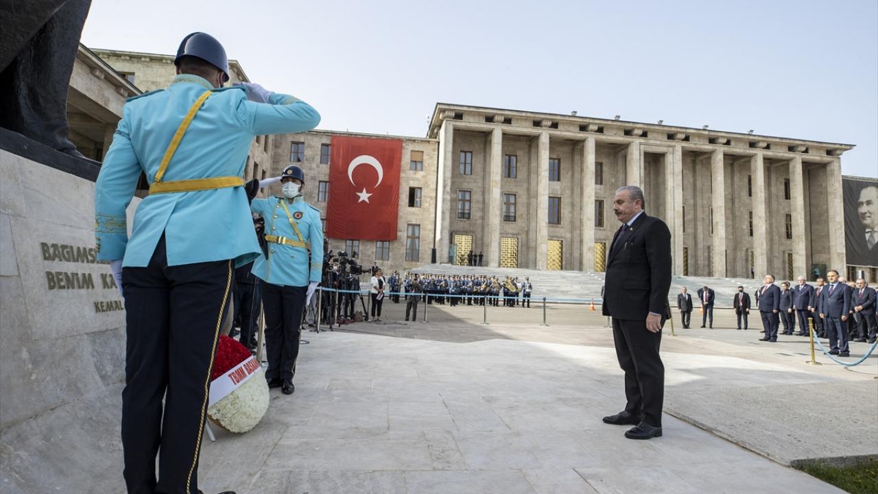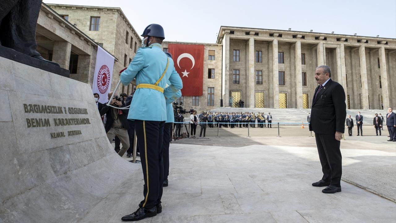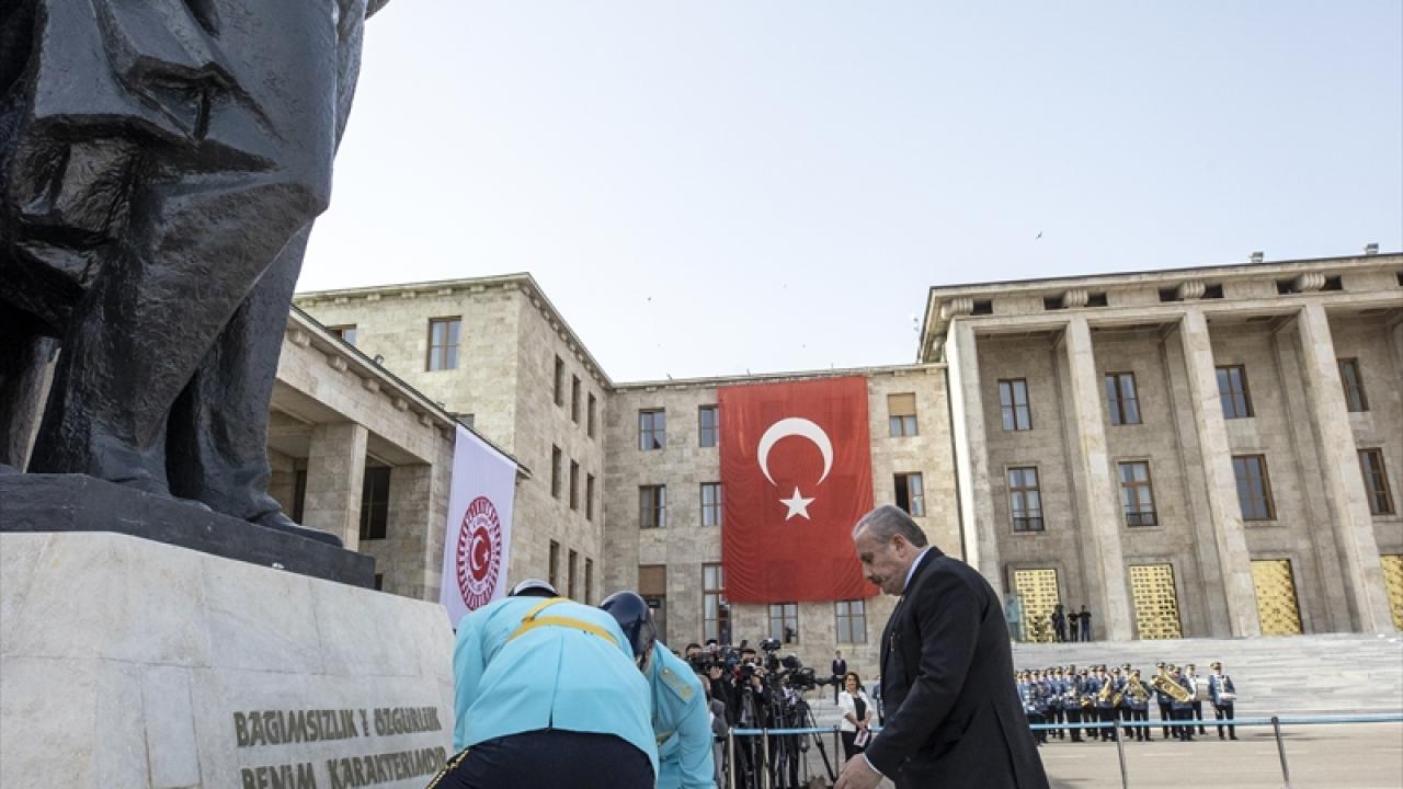 TBMM'nin açılışının 102. yılı ile 23 Nisan Ulusal Egemenlik ve Çocuk Bayramı dolayısıyla Meclis'teki Atatürk Anıtı önünde tören düzenlendi.