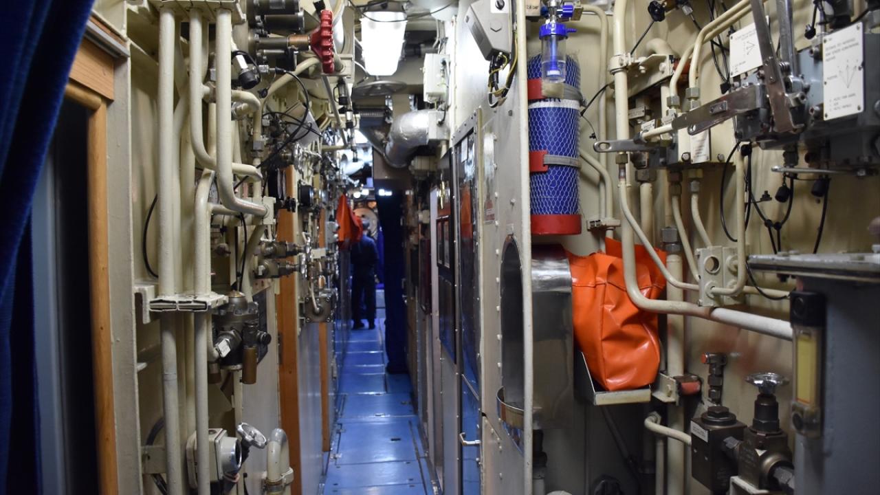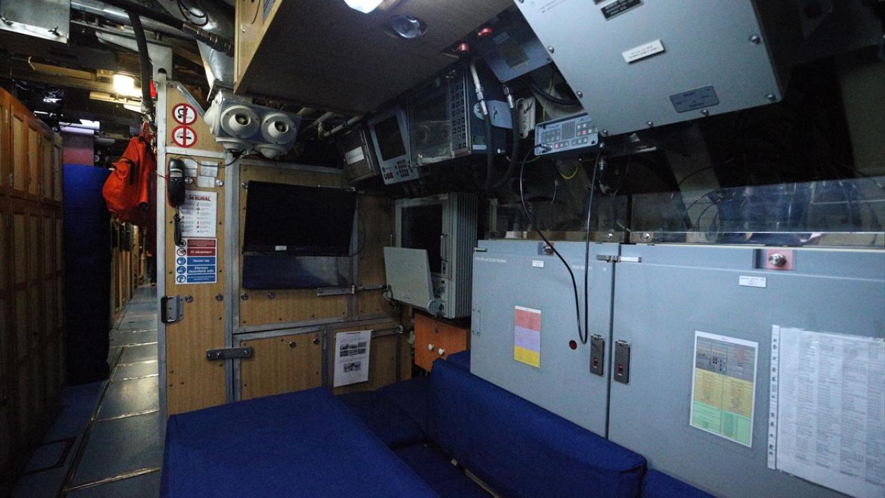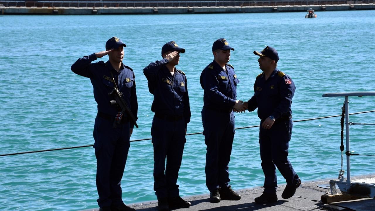 TCG 1. İnönü Komutanı Deniz Albay İsmail Koç ve 2. Komutan Binbaşı Orkun Turan, gazetecileri karşılarken denizaltının bazı bölümlerini gezdirdi.
