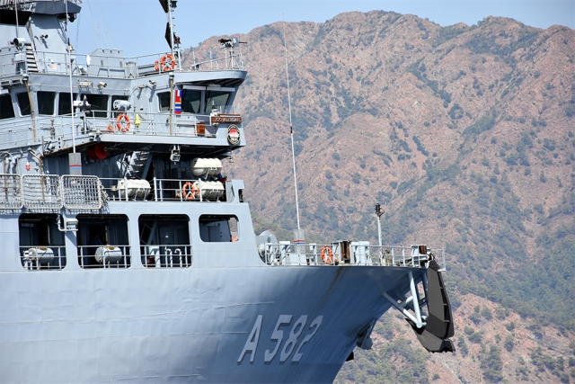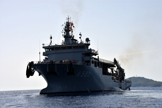 Marmaris açıklarında gerçekleştirilen "Dynamic Monarch-17" tatbikatında, Türk Deniz Kuvvetlerinin envanterine ocak ayında katılan 90 metre uzunluğunda 20 metre genişliğindeki 4 bin 500 tonluk TCG Alemdar isimli kurtarma gemisi önderlik yapıyor.