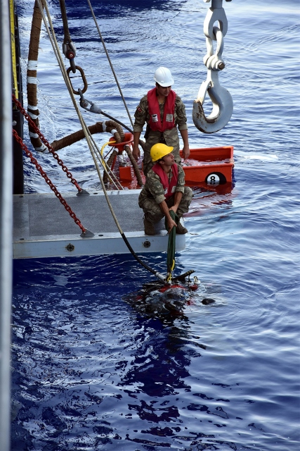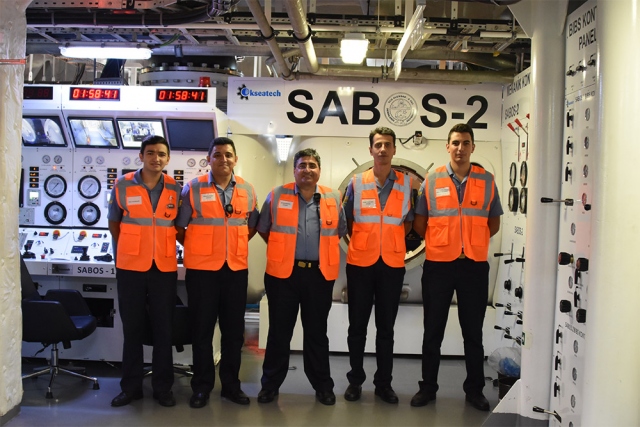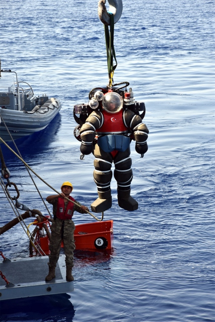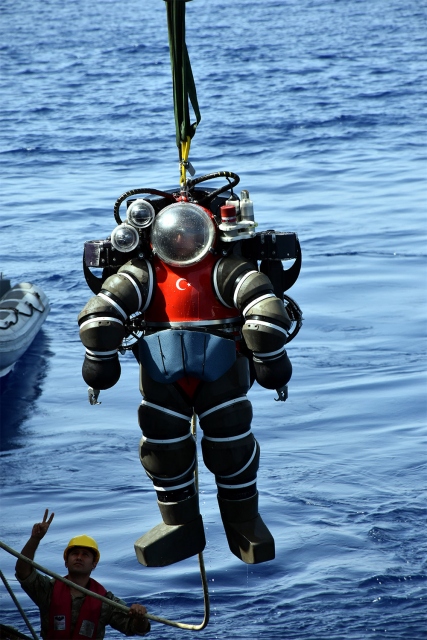 Gemide Atmosferik Dalış Sistemi (ADS) ile birinci sınıf dalgıç subaylar görev yapıyor.
