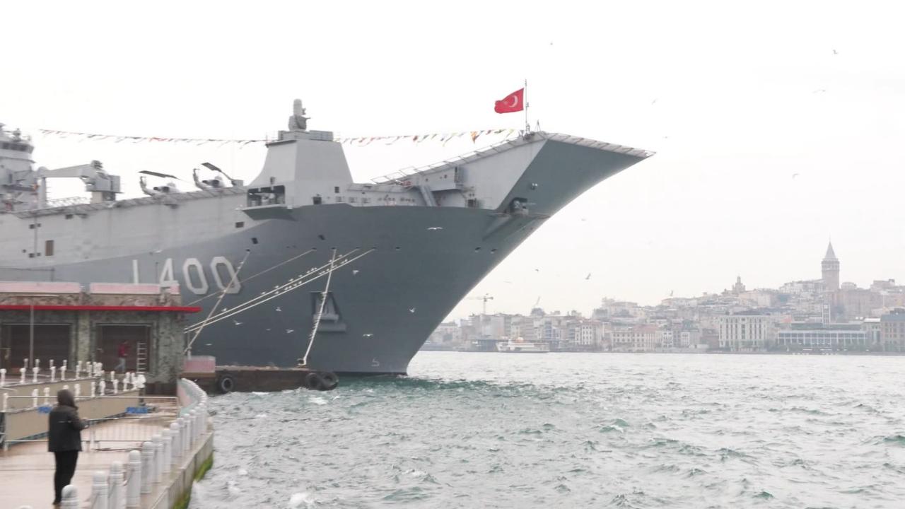 Türk donanmasının hizmetine 10 Nisan'da giren ve İzmir'de de ziyarete açılmasının ardından yeniden Sarayburnu Limanı'nda demirleyen Türkiye'nin en büyük yerli ve milli askeri gemisi TCG Anadolu, vatandaşları ağırlamaya devam ediyor.