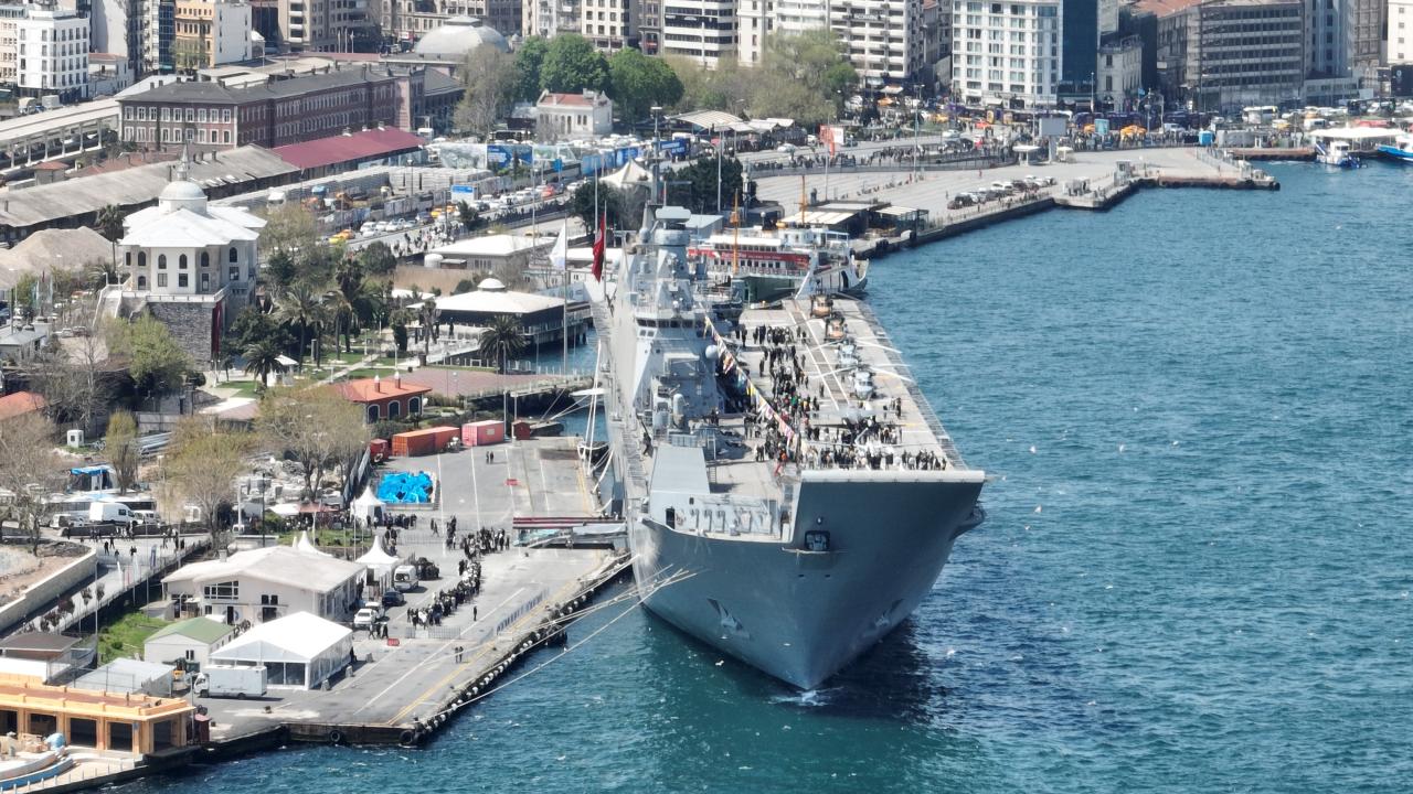İçinde dünyanın ilk silahlı insansız hava aracının da (SİHA) da yer aldığı geminin demirlediği Sarayburnu Limanı`na gelen ziyaretçiler, kayıtları yapıldıktan sonra gruplara ayrıldı ve askeri görevlilerin rehberliğinde gemiyi gezdi.