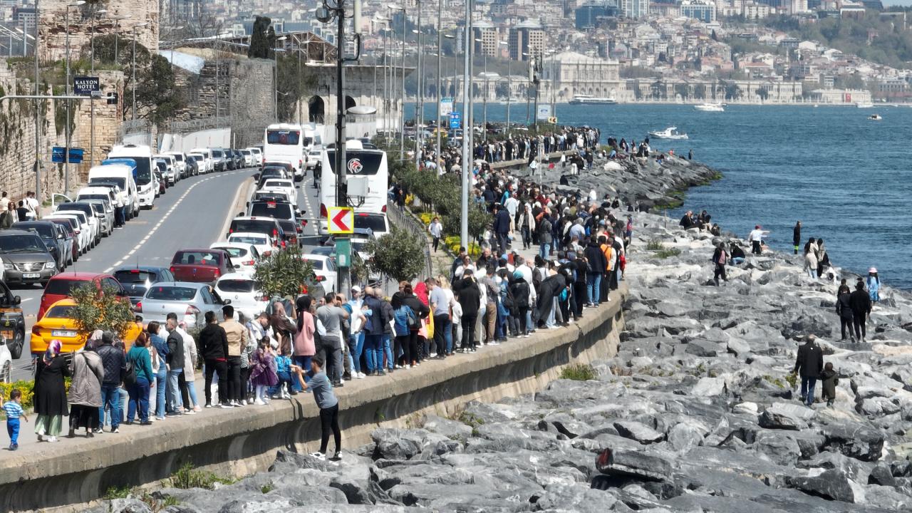 Bayramın ikinci gününde, sabah erken saatlerden itibaren Sarayburnu Limanı`na gelen vatandaşlar, Eminönü ve Ahırkapı arasındaki yolun kaldırım kısmında uzun kuyruklar oluşturdu.