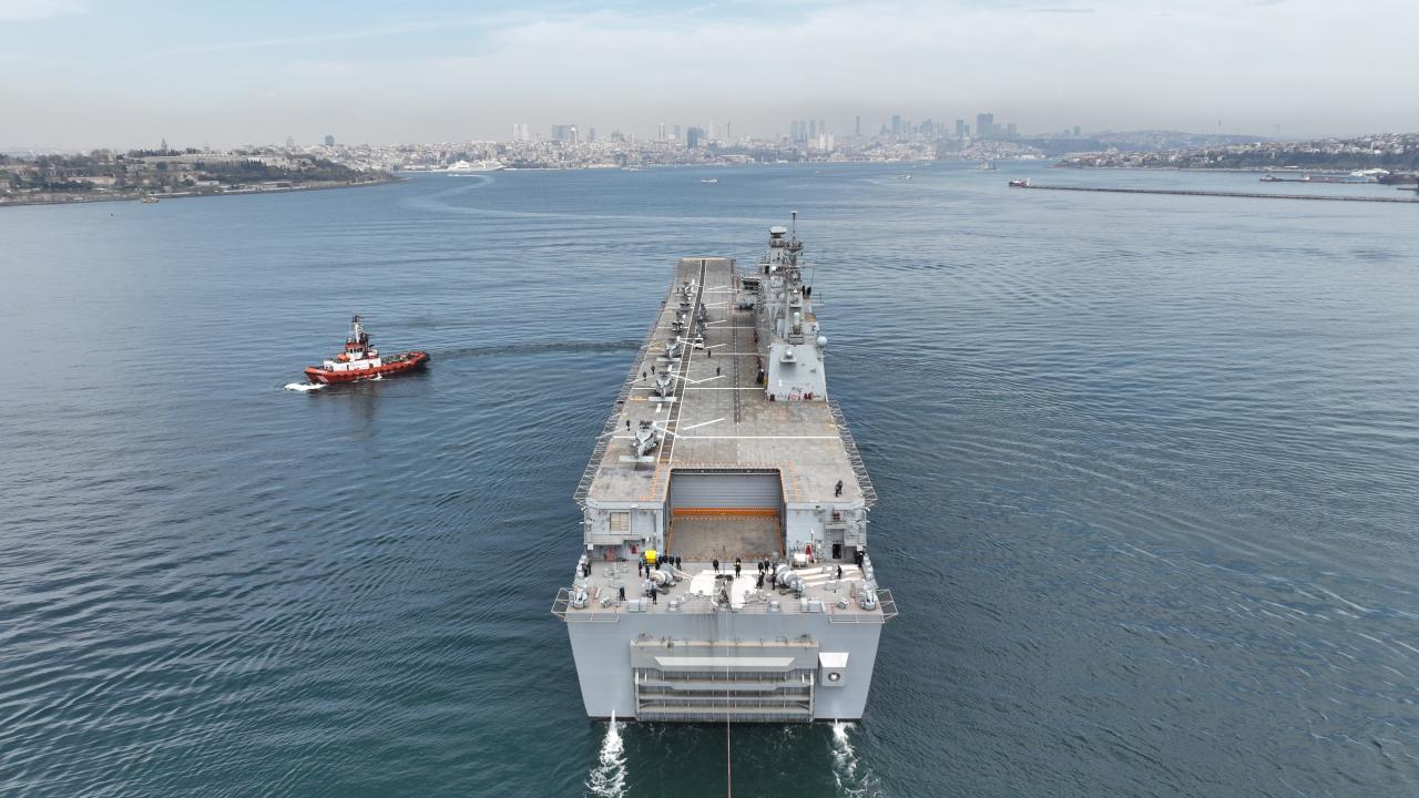 Sarayburnu`na gitmek üzere yola çıkan gemi, bugün İstanbul Boğazı`ndan geçti. TCG Anadolu giriş yaptığı sırada boğaz gemi trafiğine kapatıldı.