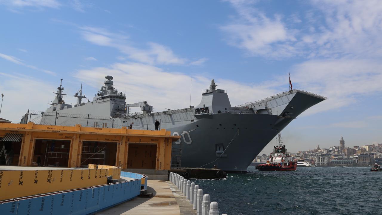 TCG Anadolu, donanmanın hizmetine girmesinin ardından Sarayburnu Limanı`na demirledi.
