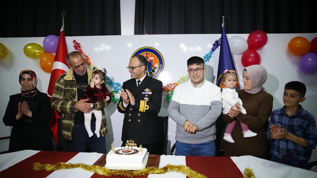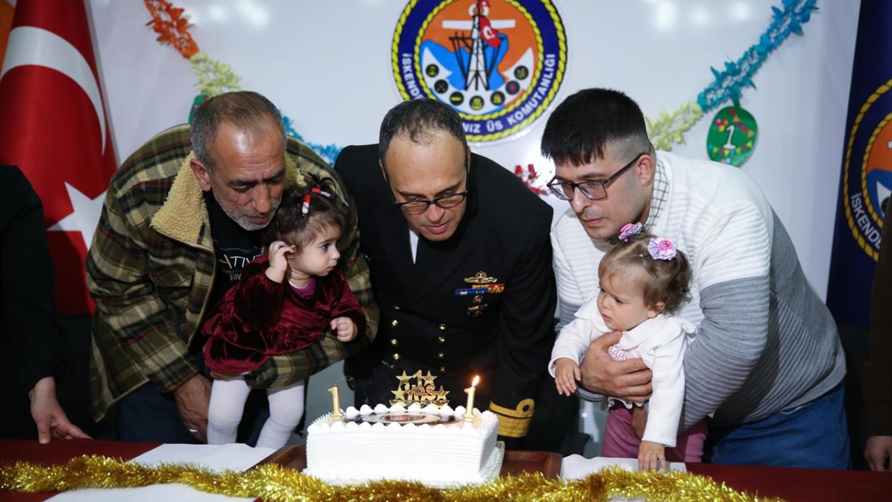 Açıkbaş ve Aytekin aileleri, depremlerde yüzer hastaneye dönüştürülerek Dörtyol ilçesi MMK Metalurji Limanı`na demirleyen ve 119 gün bölgede görev alan Türk Silahlı Kuvvetlerinin (TSK) çıkarma gemisi TCG Bayraktar`da dünyaya gelen bebekleri için düzenlenen sürpriz doğum gününde bir araya geldi.