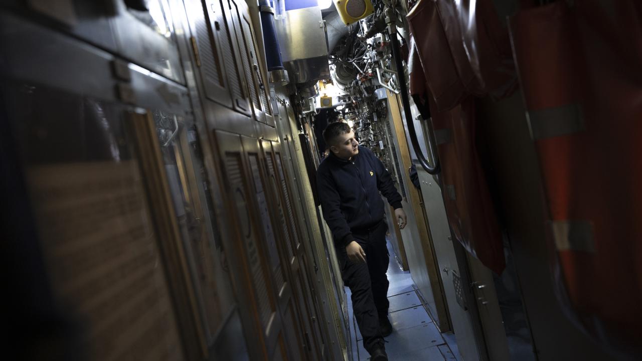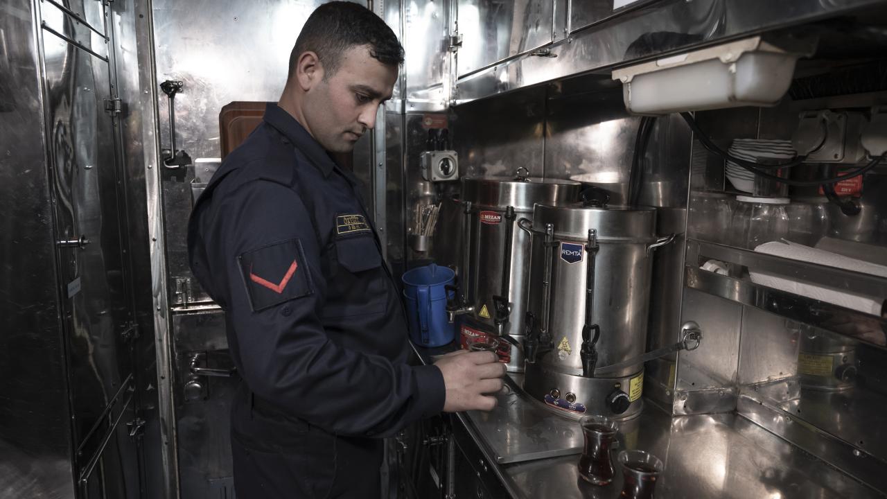 TCG Preveze Kıdemli Astsubayı Hacı Murat Sever, personelin uzun bir denizaltıcılık kursunu tamamladıktan sonra gemilerde zorlu bir staja çıktığını ve başarılı olanların denizaltıcı brövesi takmaya hak kazandığını söyledi.