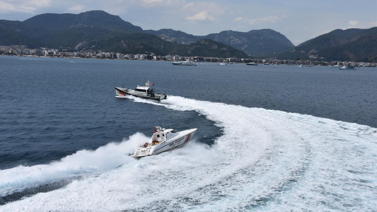 TCSG Umut Gemisi`ne denizde en hızlı botlardan Kaan 19 sınıfı Bot-2 ile birlikte 2 arama kurtarma botu da eşlik etti.
