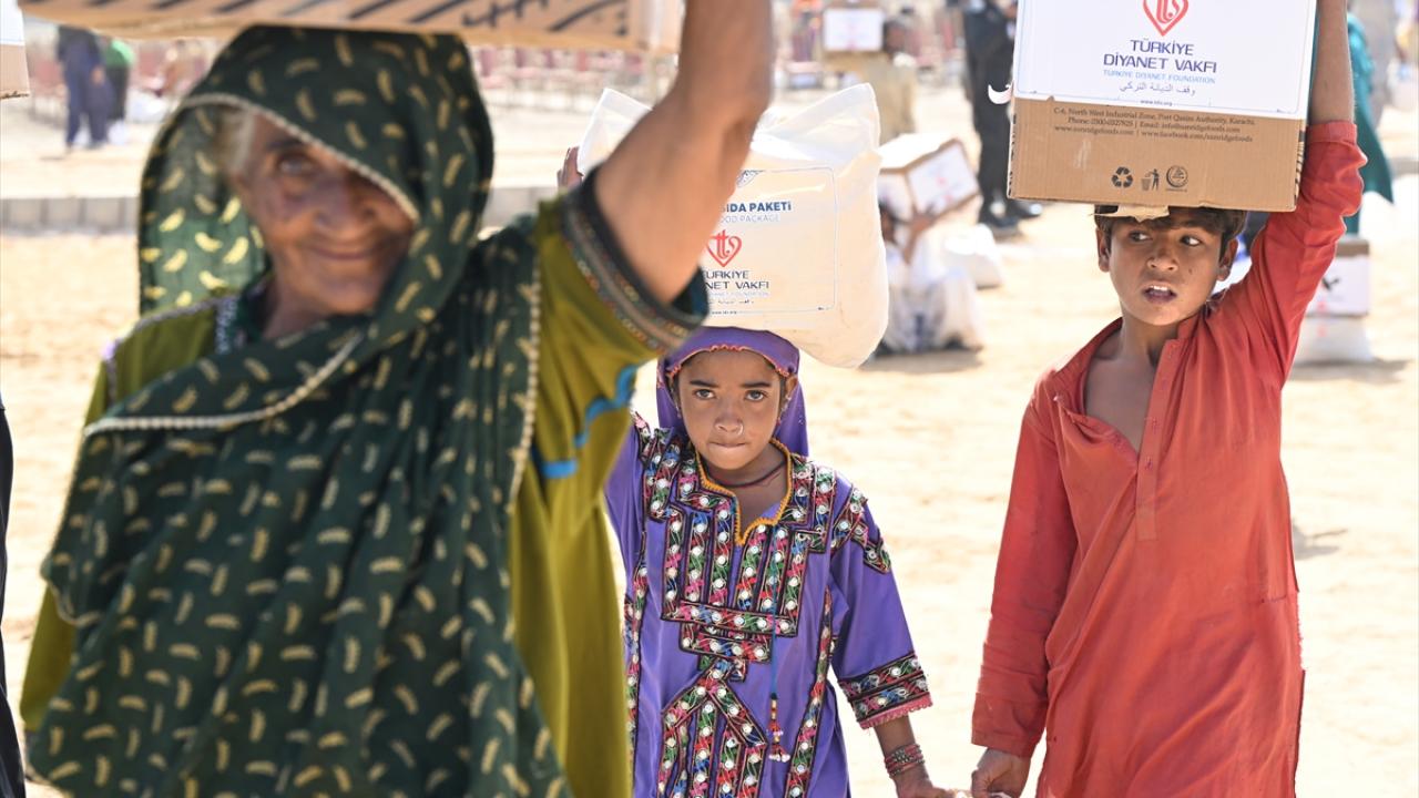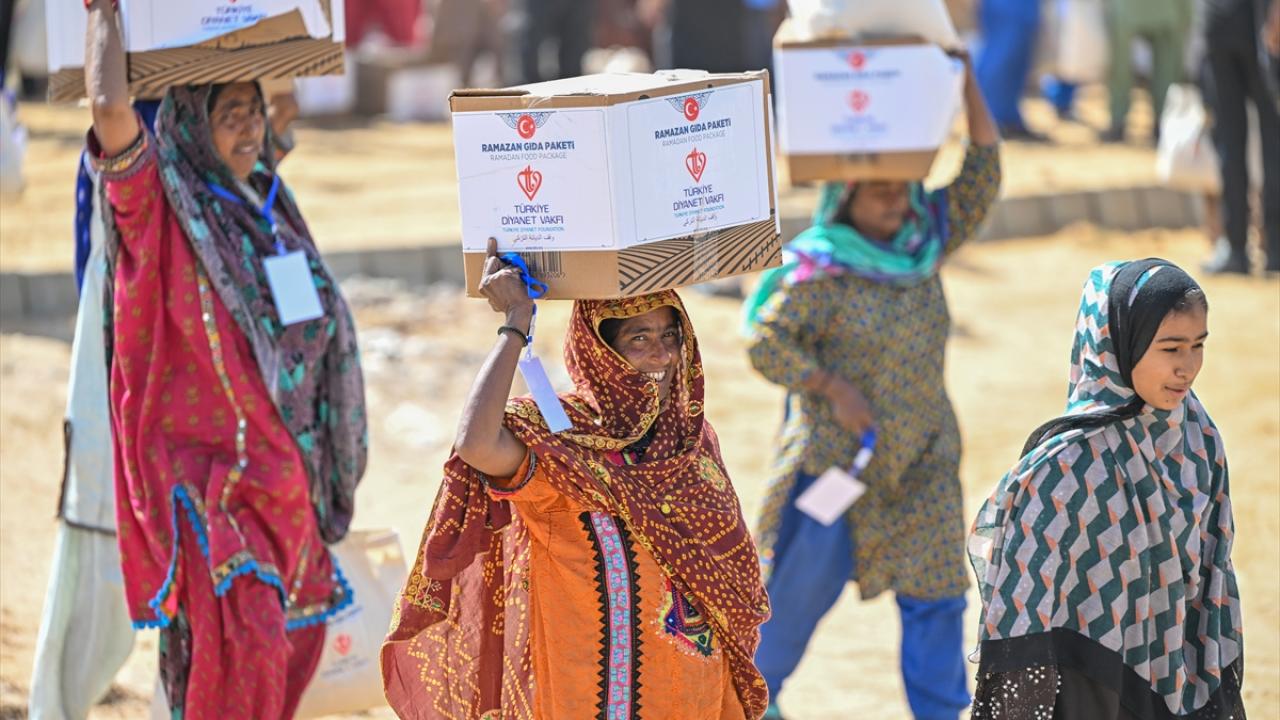 TDV, ramazan dolayısıyla Pakistan`ın Thatta şehrinde, pirinç, un, sıvı yağ ve hurma gibi gıda malzemeleri bulunan gıda kolileri dağıttı.