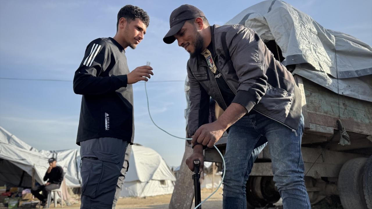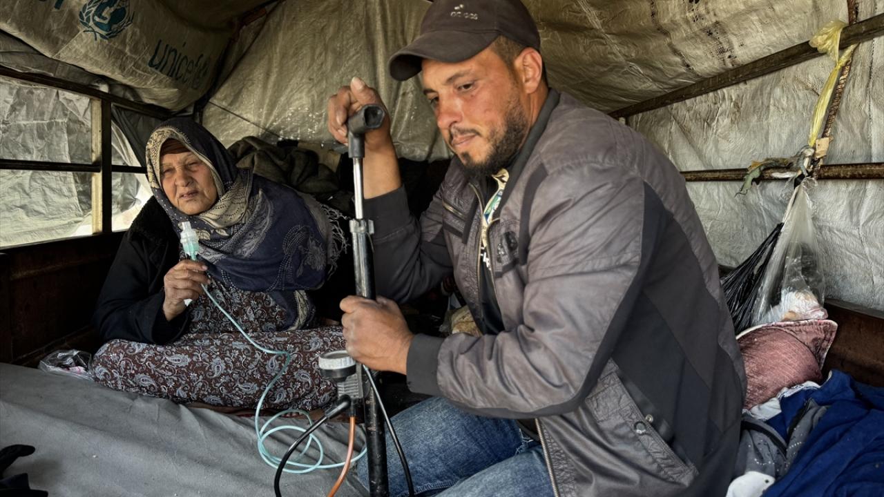 Filistinli Samih Ebu Saada, İsrail’in Gazze Şeridi’ne uyguladığı abluka nedeniyle yaşanan ağır tıbbi malzeme kıtlığında, yaşlı annesini hayatta tutabilmek için tıbbi oksijen yerine "bisiklet lastiği pompası" kullanmak zorunda kalıyor.