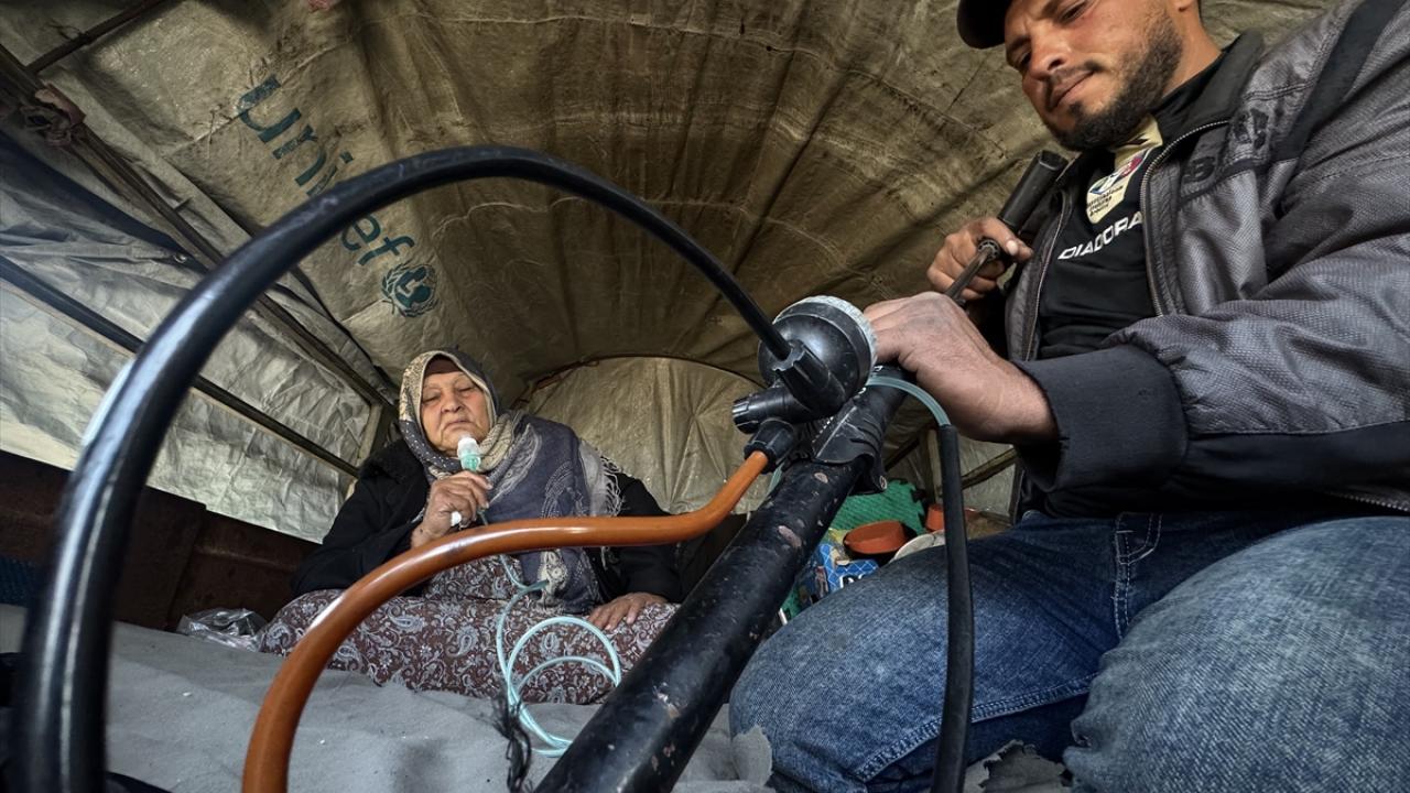Tedavi imkanlarının tükendiği Gazze’de, yaşlı bir annenin nefesi, lastik pompasına emanet