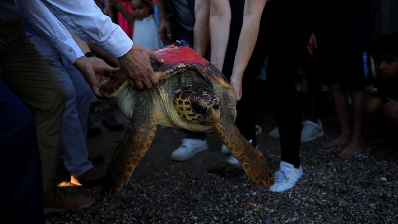 Antalya'nın Kemer ilçesinde 1,5 yıl önce kıyıda bulunan caretta caretta, Muğla'daki Deniz Kaplumbağası Araştırma Kurtarma Rehabilitasyon ve Bilgilendirme Merkezinde (DEKAMER) tedavisi tamamlandıktan sonra uydu takip cihazı takılarak denize salıverildi.