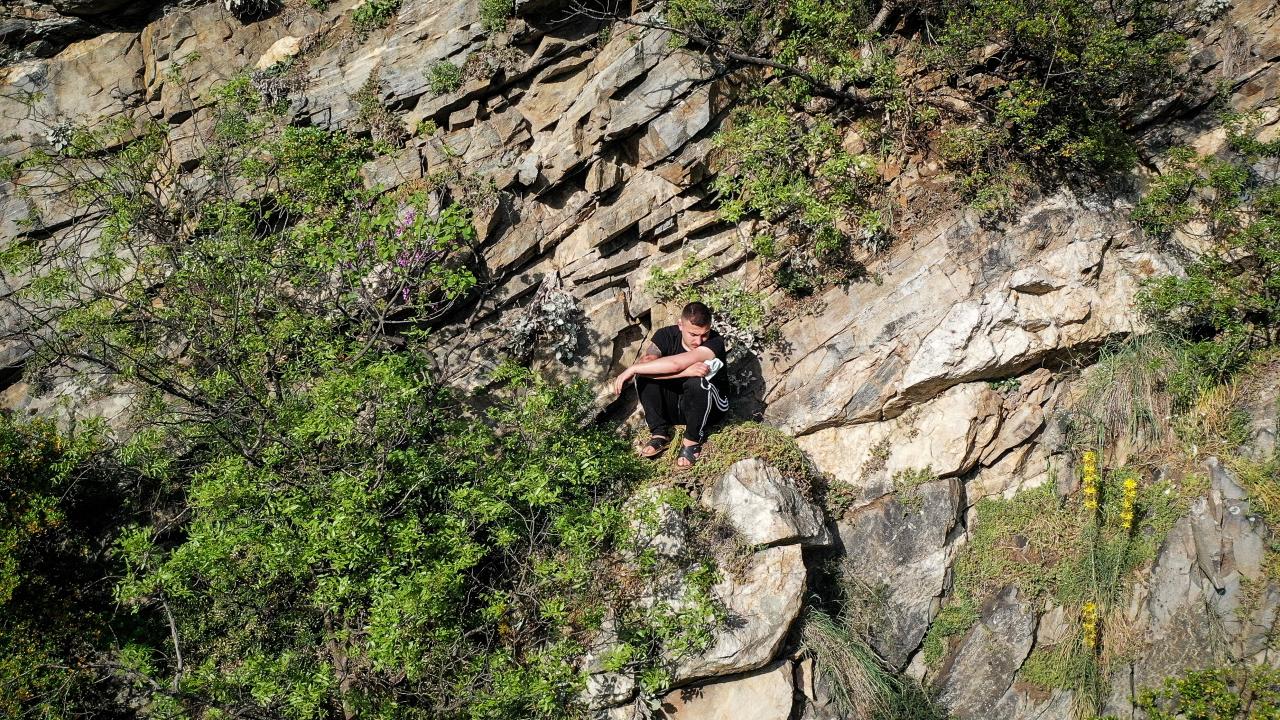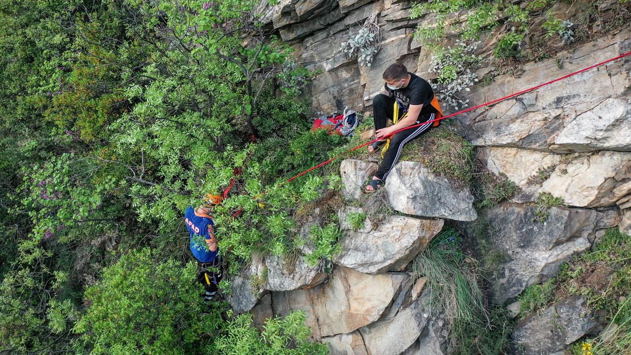 Yaklaşık 100 metrelik kayalığa tırmanan S.Ç, burada mahsur kalınca cep telefonuyla arkadaşlarını aradı.