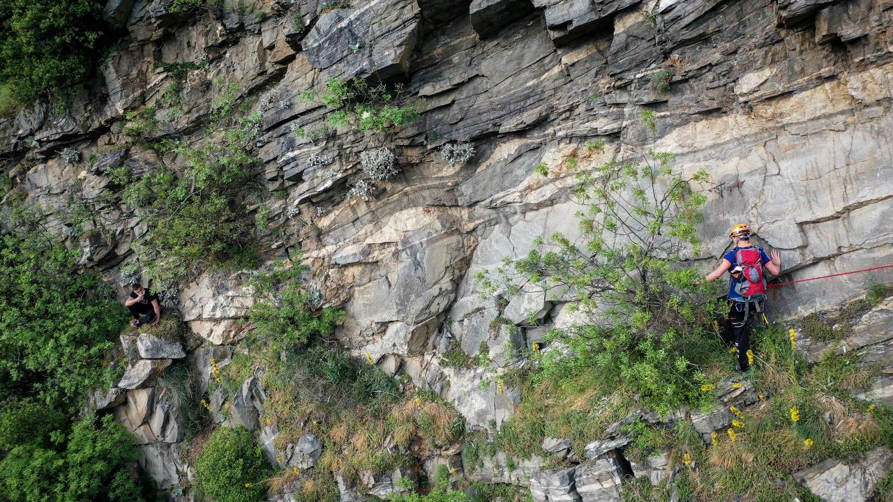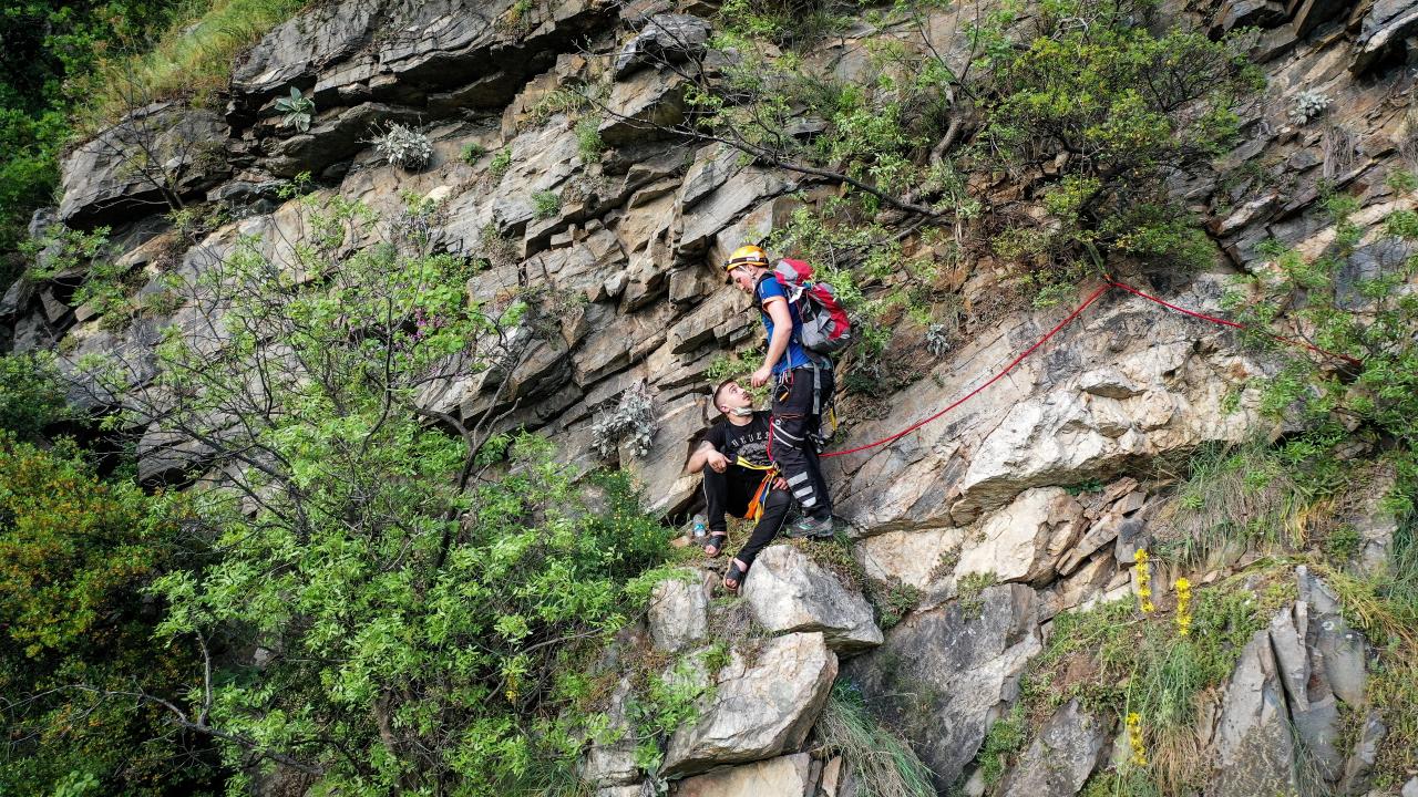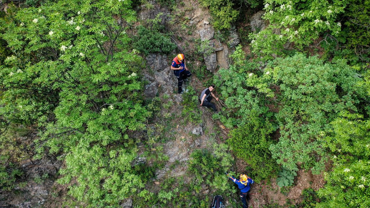 Kayalıklara tırmanan ekipler, yaklaşık 4 saatlik çalışma sonucu halat yardımıyla S.Ç`yi kurtardı.