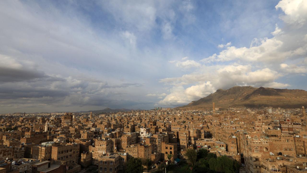 Yemen`in başkenti Sanaa`nın tarihi mahallesinin genel bir görünümünü gösteren bir fotoğraf.