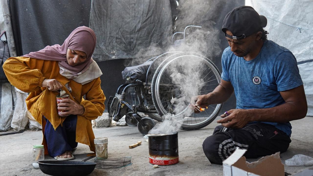 İbrahim, bunun için tekerlekli sandalyeyle de olsa Gazze Şeridi`nin kuzeyinde yer alan Zikim bölgesindeki sözde yardım dağıtım noktalarına ya da aşevlerine gidiyor.