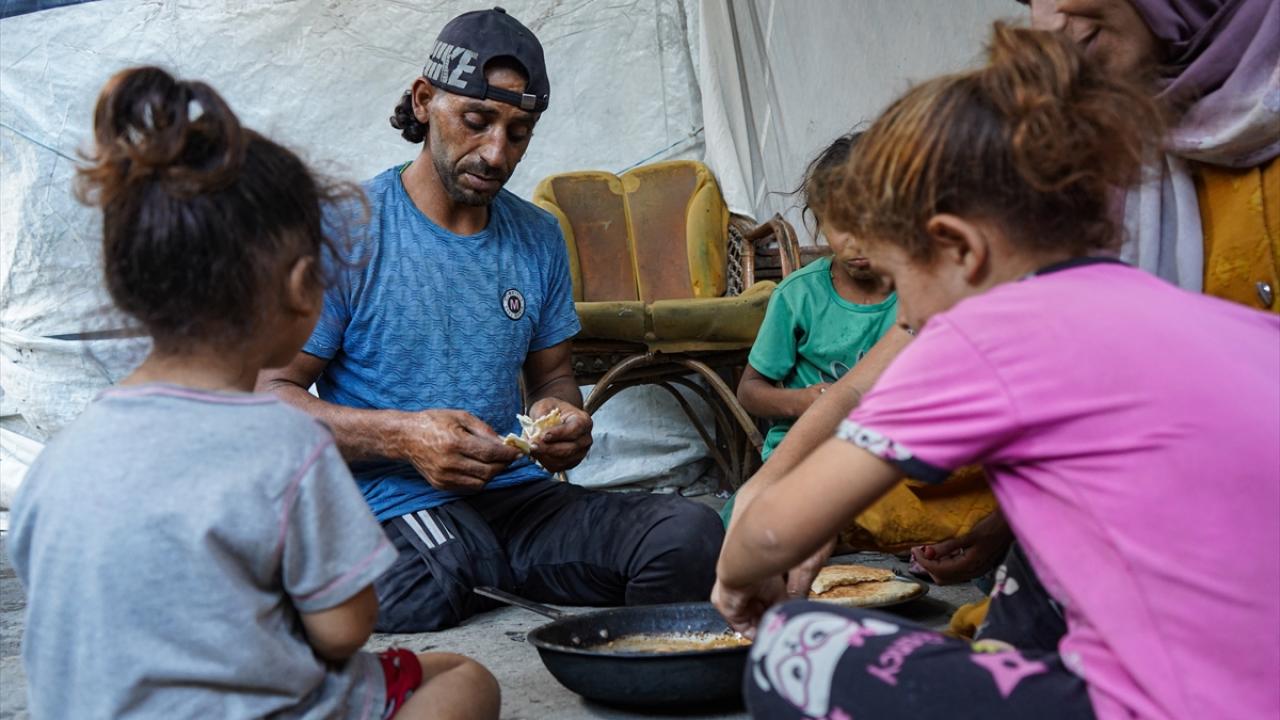 Bazen aşevlerinden gidip yemek almaya çalıştığını bazen de komşudan ekmek istediklerini kaydeden baba, "Yiyecek bulursak yiyoruz yoksa tuzlu suyla öğünü geçiştiriyoruz. Mercimek yedikten sonra çocuklara hemen acıkmamaları için tuzlu su içmelerini söylüyorum." diye konuştu.