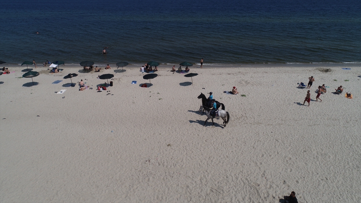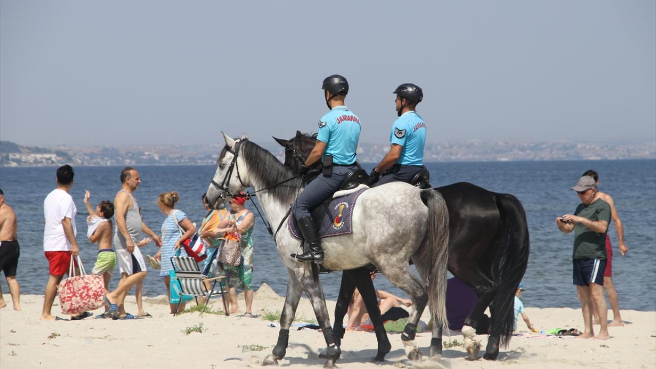 Nevşehir Jandarma At ve Köpek Eğitim Komutanlığından (JAKEM) geçici görevle "Heybet" ve "Kafkas" adlı atla Marmaraereğlisi ilçesinde bulunan Sultanköy sahiline gelen jandarma timi devriye görevine başladı.