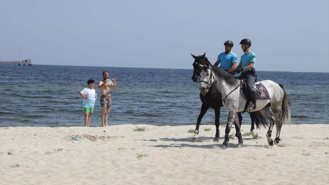 Devriye gezen atlı tim, sahilde bulunan vatandaşlardan ilgi gördü.