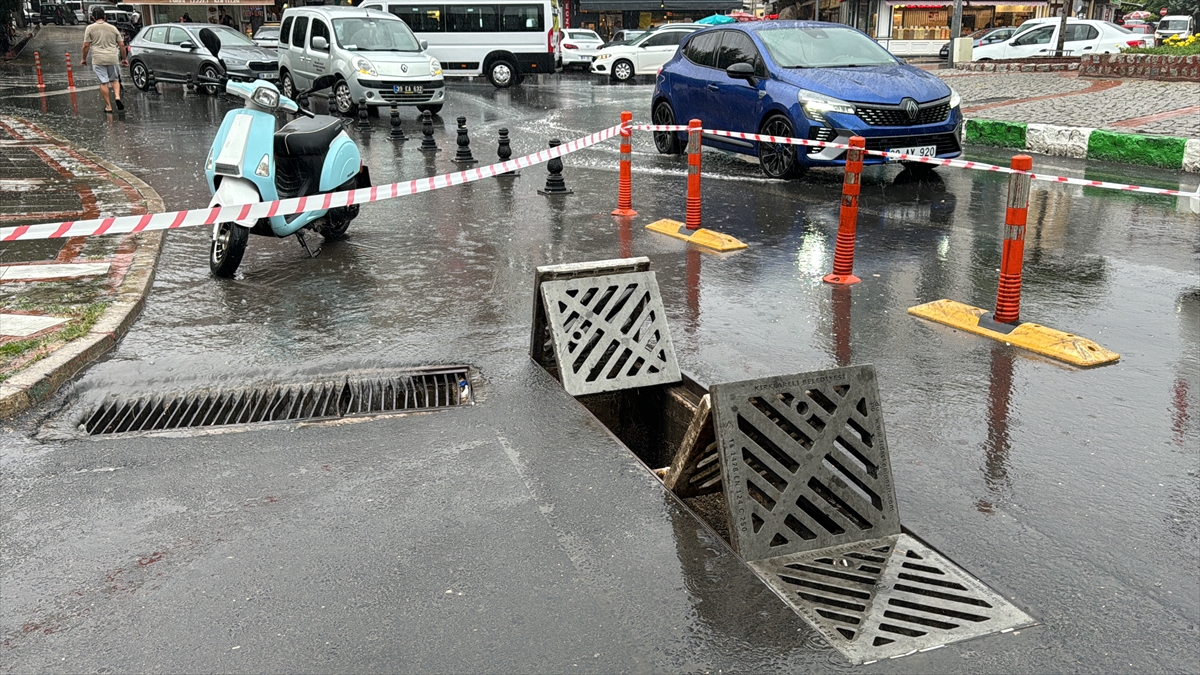 Kentte aniden başlayan kuvvetli sağanak nedeniyle bazı cadde ve sokaklarda su birikintileri oluştu.