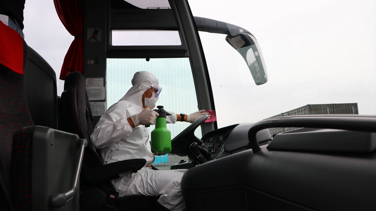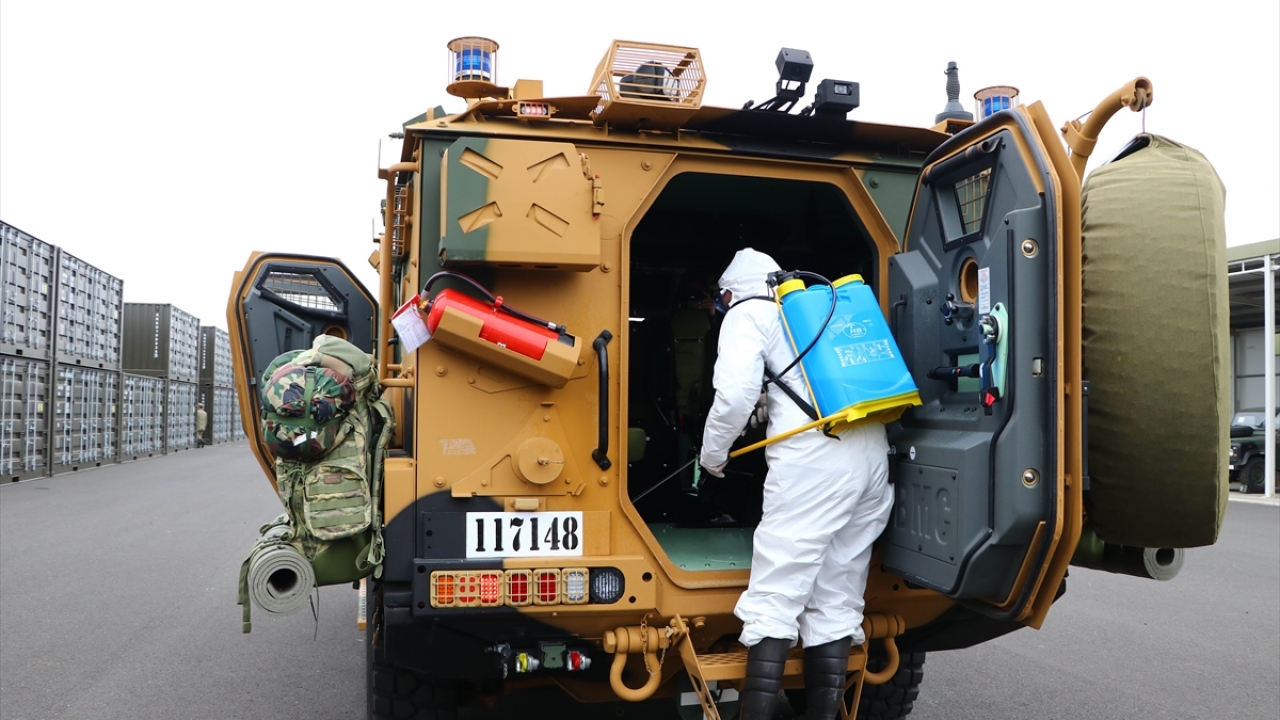 Askeri araçlar ve personel araçları her kullanımdan önce ve sonra dezenfekte ediliyor.