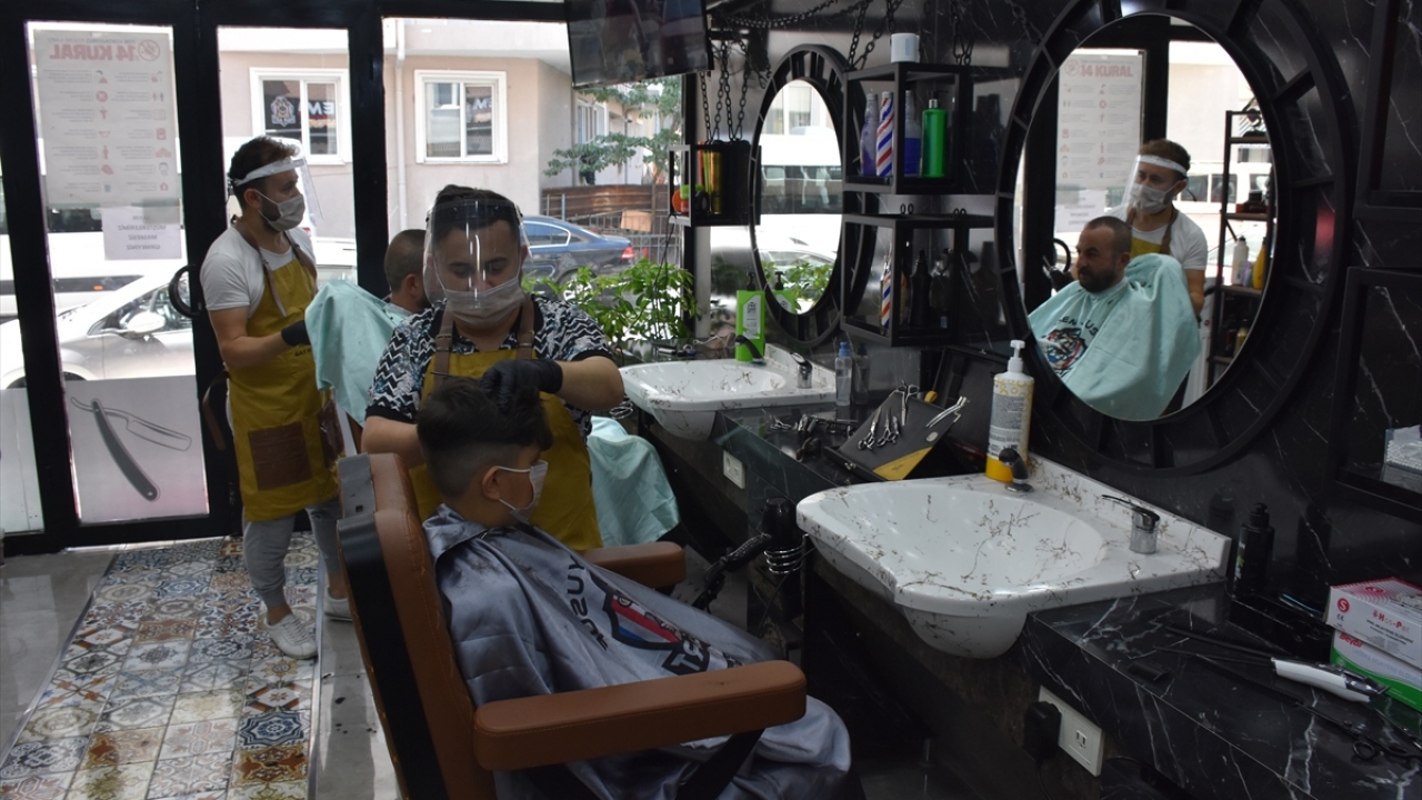 Tekirdağ'ın Çorlu ilçesinde bayram tıraşları koronavirüs tedbirlerine uyularak yapılmaya başlandı.