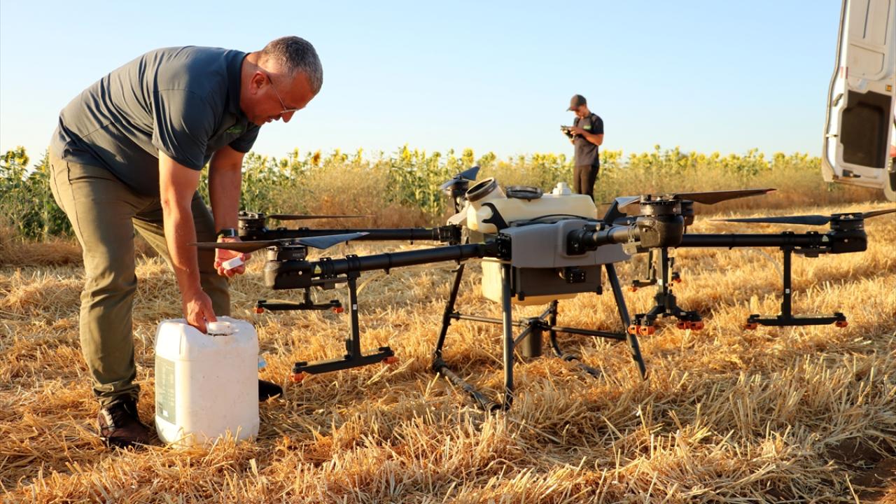 İki hafta önce çekirgelerin mera alanlarında görüldüğünü dile getiren Kıray, çekirgelerin ayçiçeği tarlalarına zarar vermeye başlamasının ardından dron ve ilaçlama makineleriyle önlem almaya çalıştıklarını vurguladı.