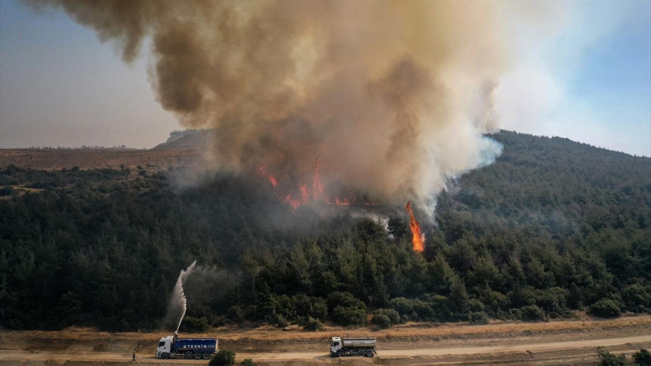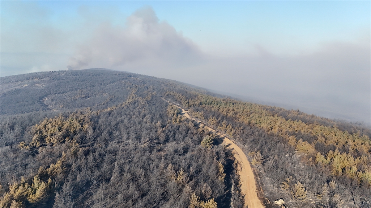 İstiklal Mahallesi`nde dün öğle saatlerinde tarım alanından başlayıp ormana sıçrayan yangın rüzgarın etkisiyle geniş alana yayılarak Çanakkale sınırını geçmişti.