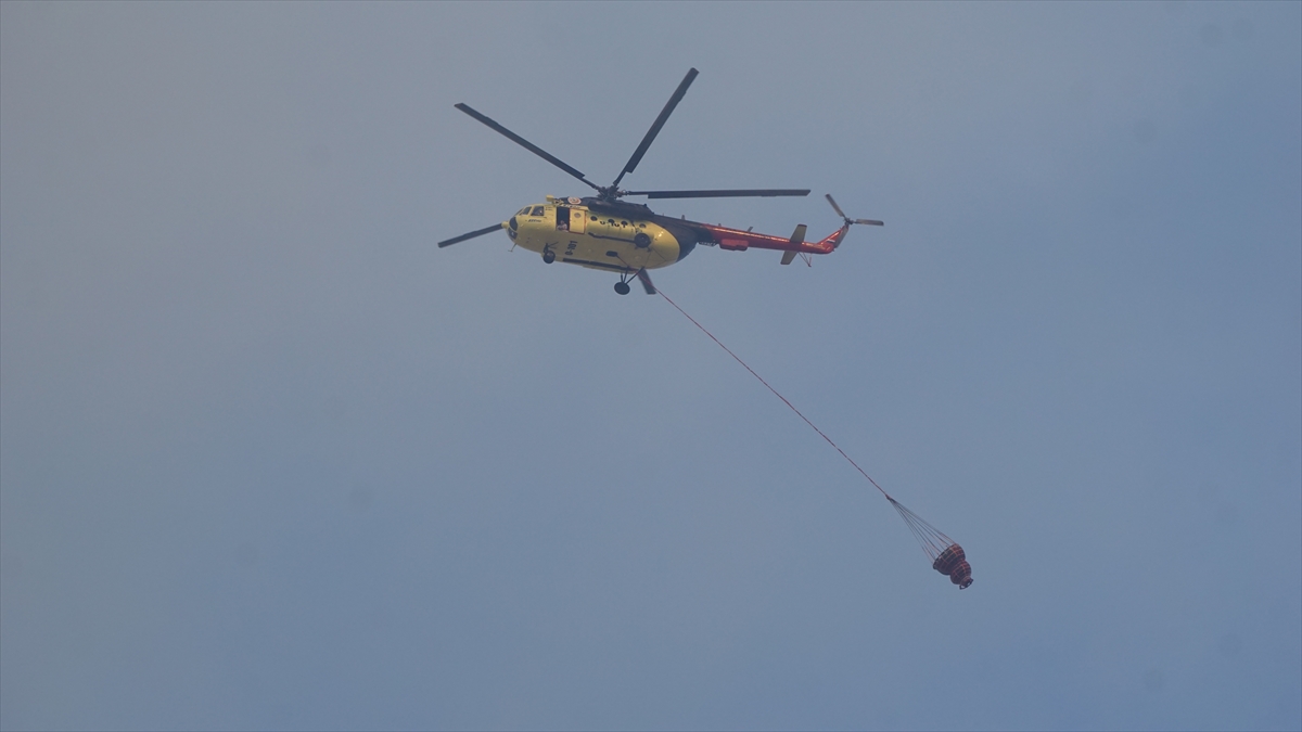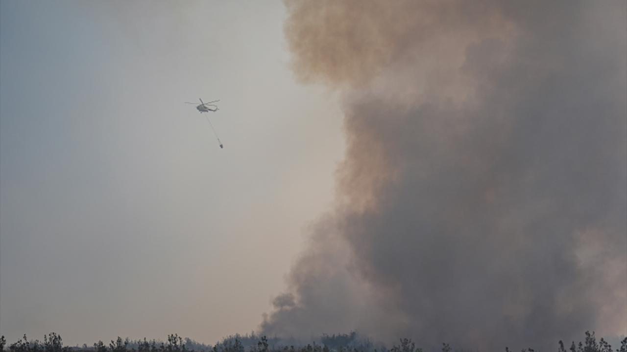 Karadan 100`e yakın arazöz ve yaklaşık 400 personelin yanı sıra 21 hava aracıyla mücadele devam ediyor.
