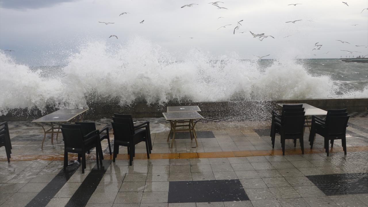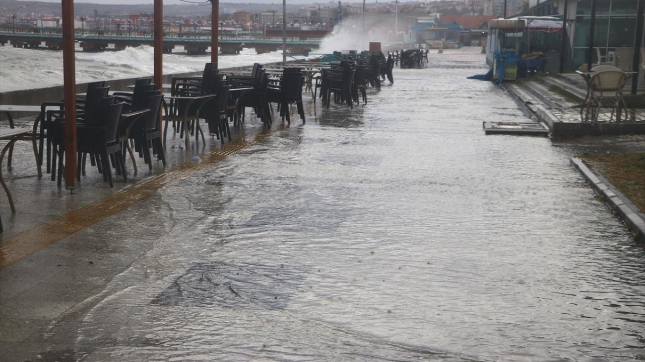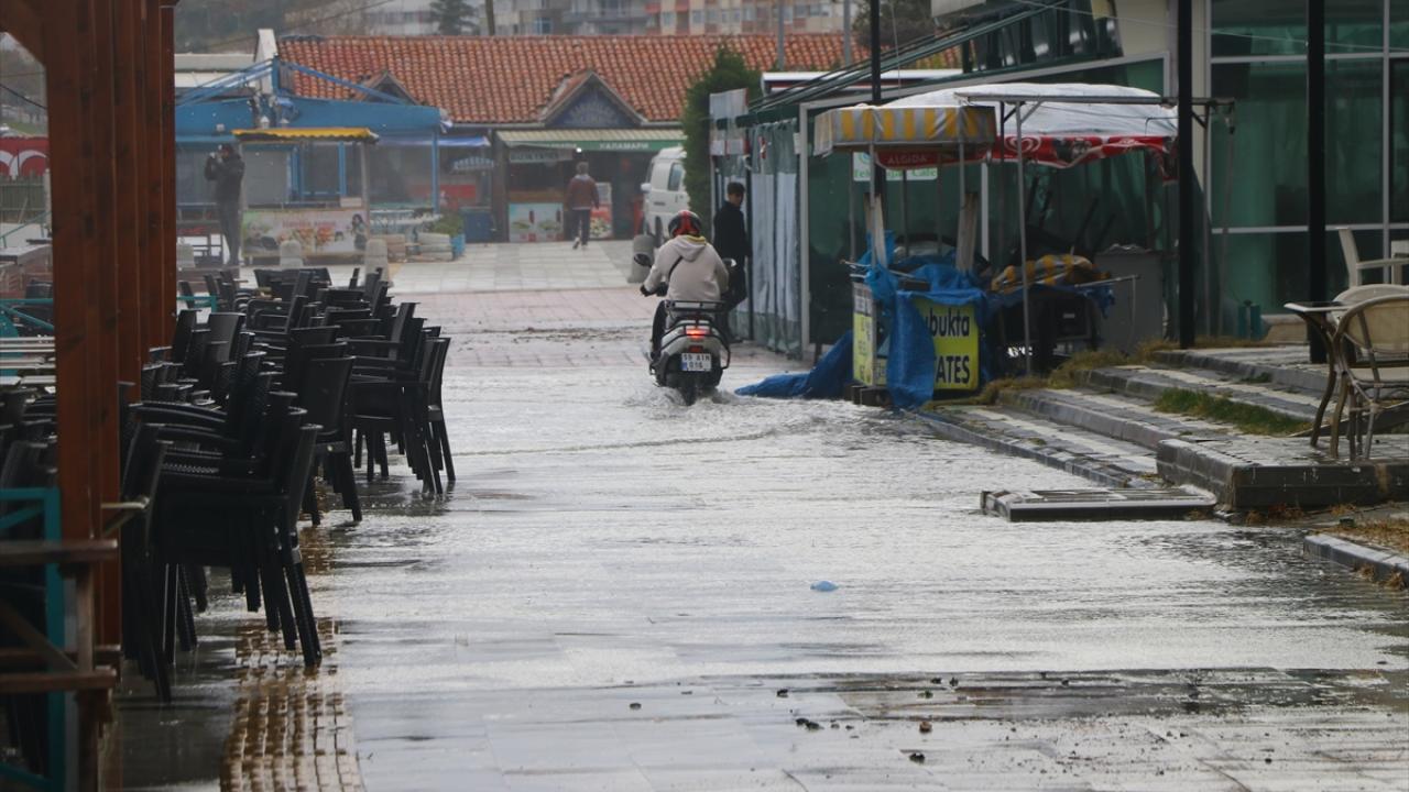 Sahildeki bazı işletmelerin önünde lodos nedeniyle su birikintisi oluştu.