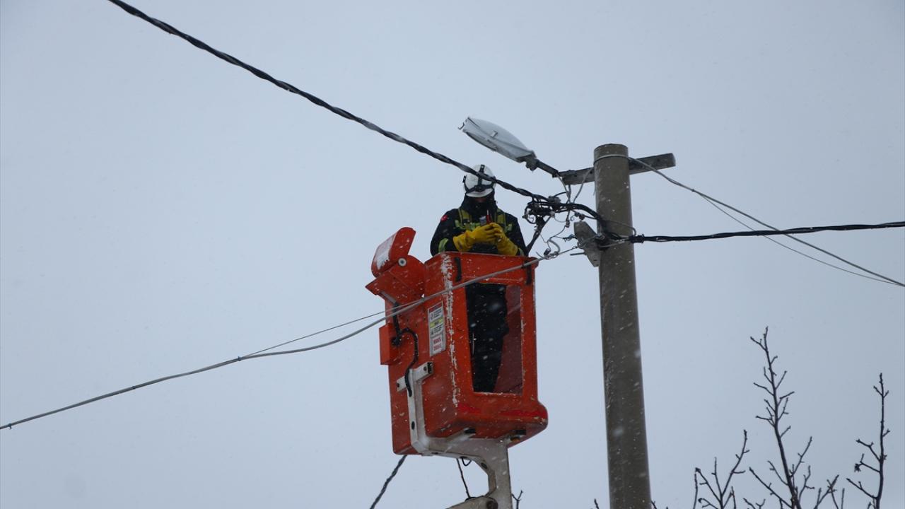 Kentte sabah saatlerinde başlayan ve aralıklarla devam eden kar yağışının ardından, arıza anonsu gelen bölgeye giden ekipler güvenlik önlemlerini aldıktan sonra arızaya müdahale ediyor.