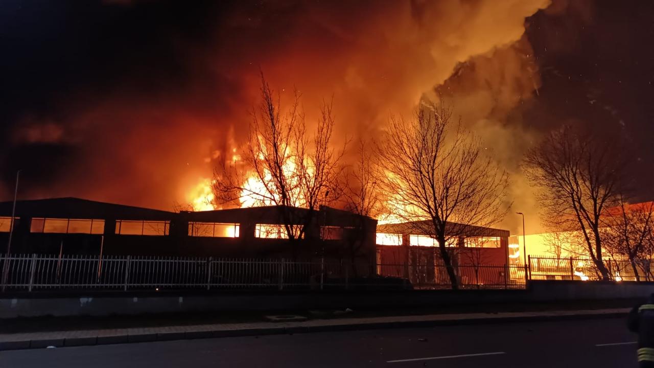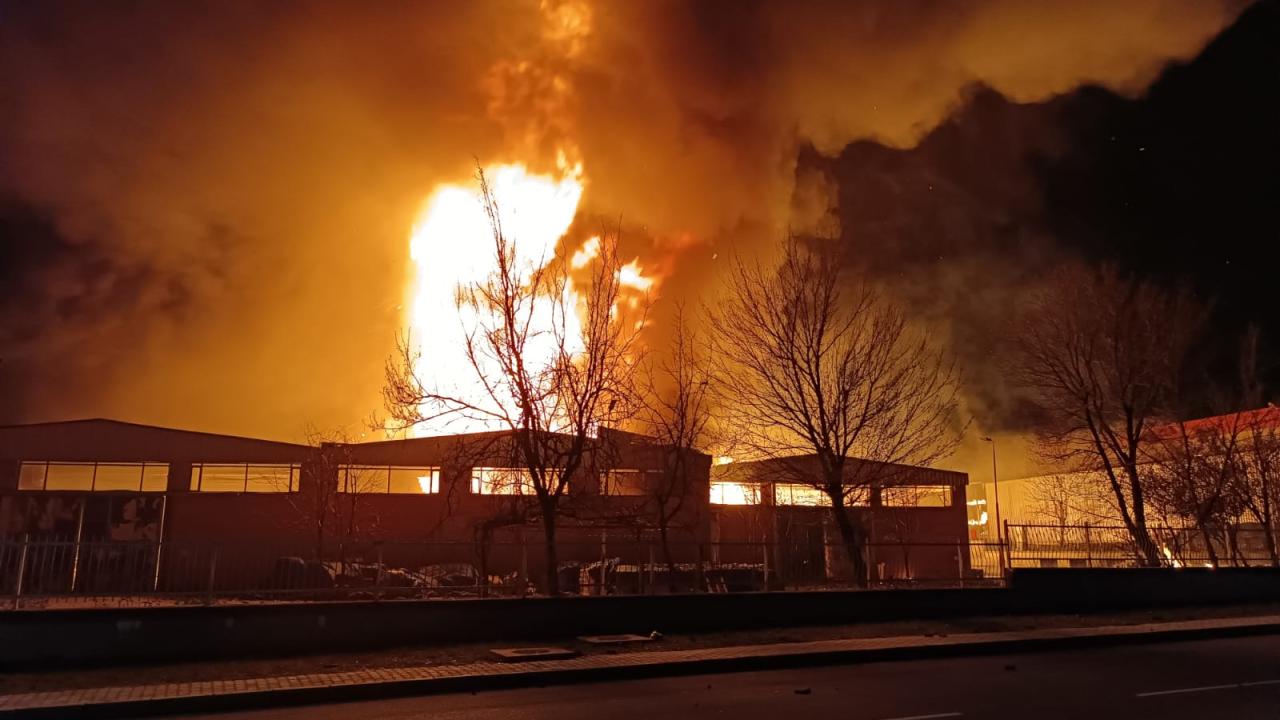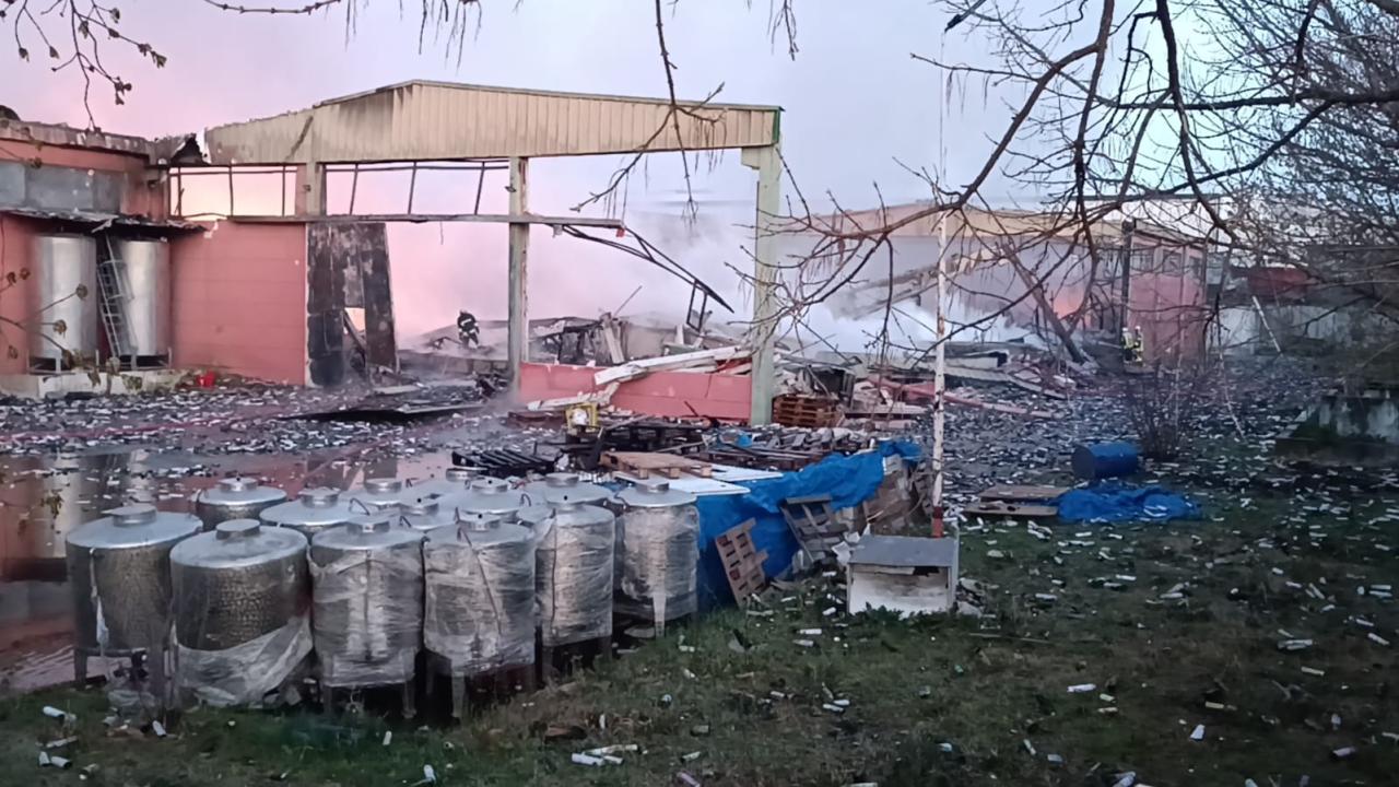 Yangın ve patlamalar nedeniyle deponun bazı duvarları yıkıldı, parfüm şişeleri fabrikanın dışına fırladı.
