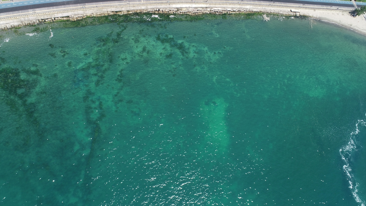 Bugün ise karadan denize doğru esen rüzgar sayesinde deniz salyası dağıldı.