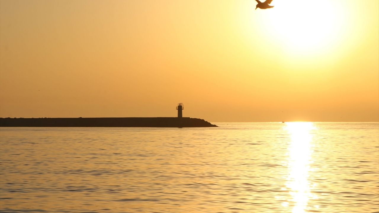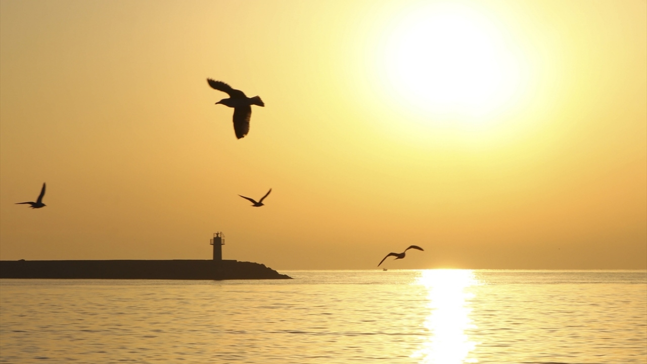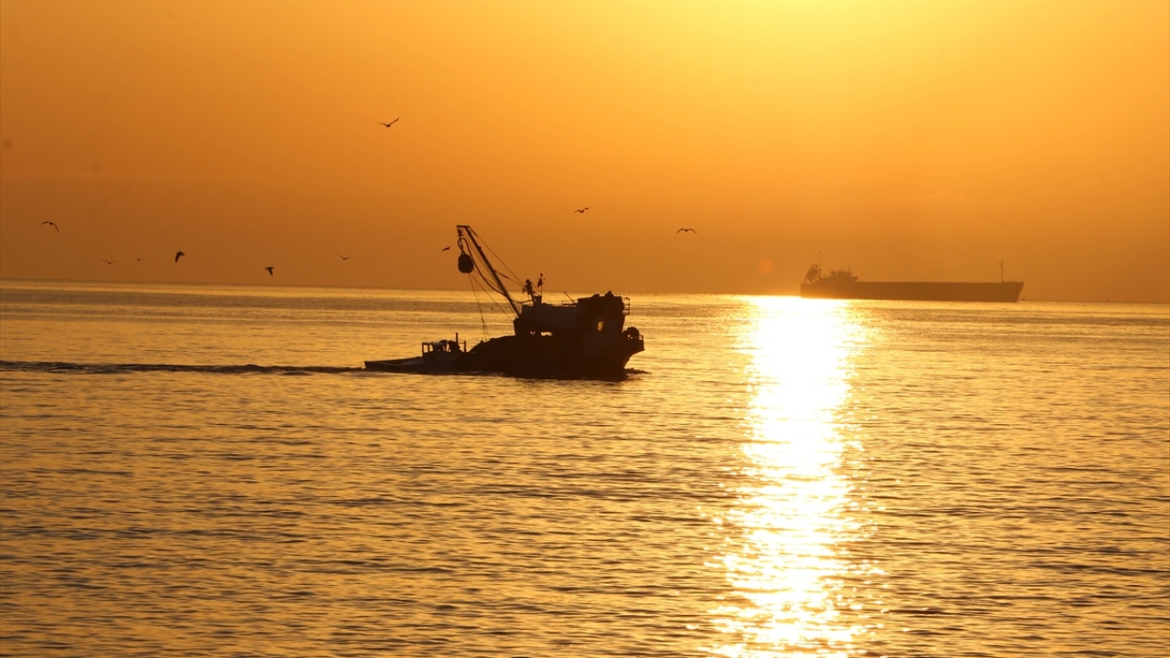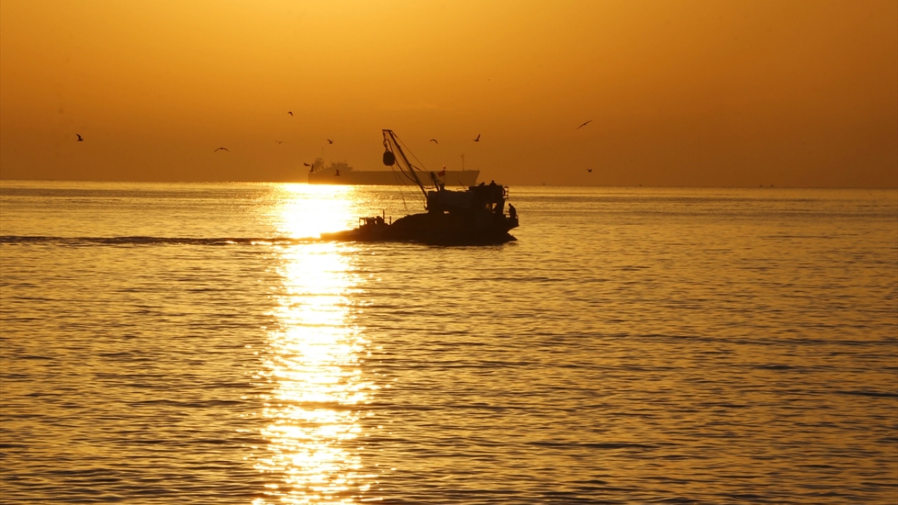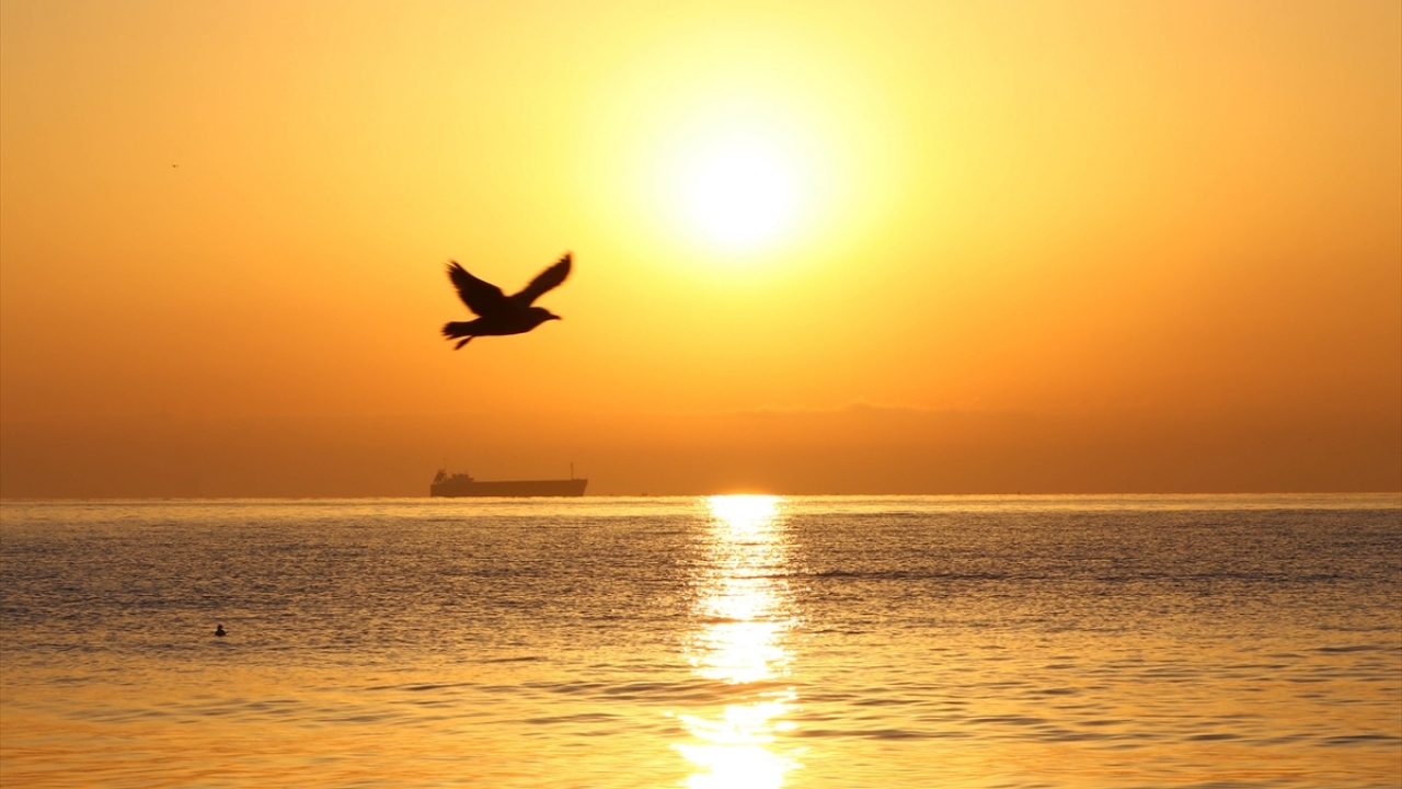 Tekirdağ'da gün doğumu, martılar ve açıkta bekleyen gemilerle birlikte güzel görüntü oluşturdu.