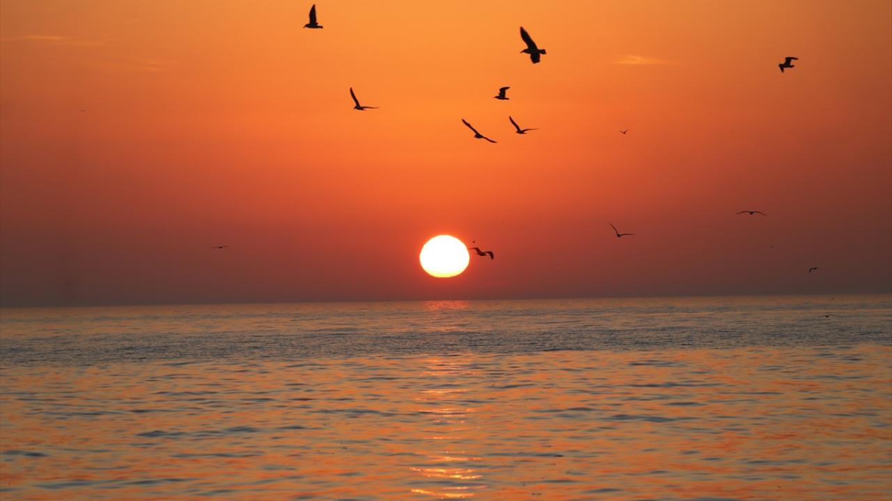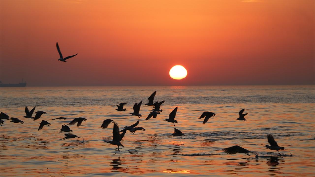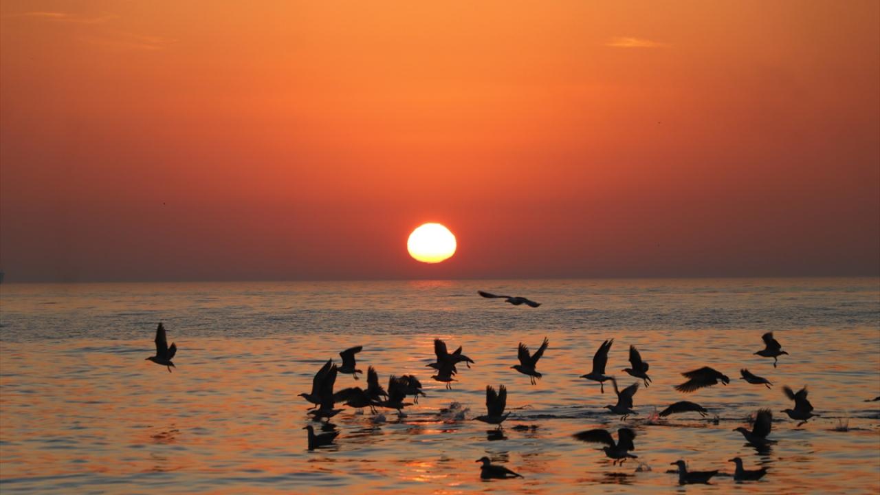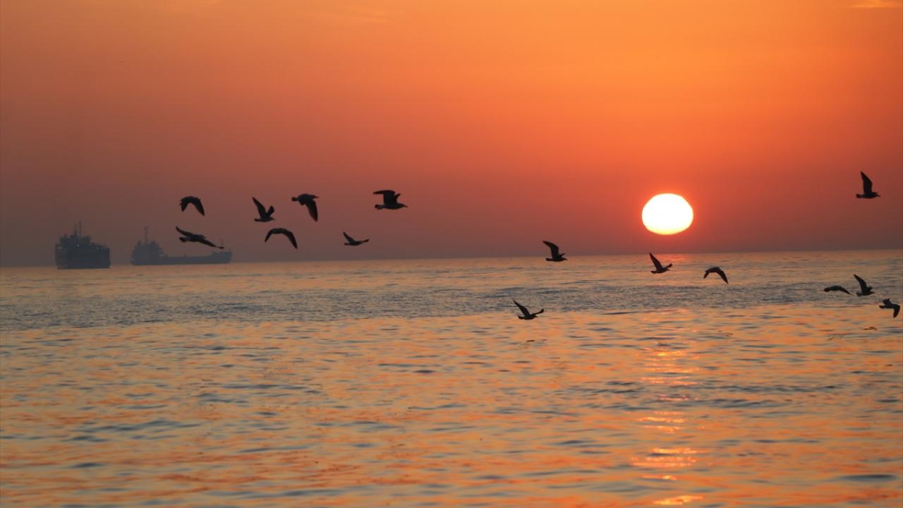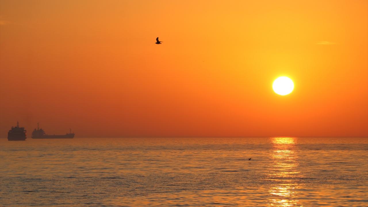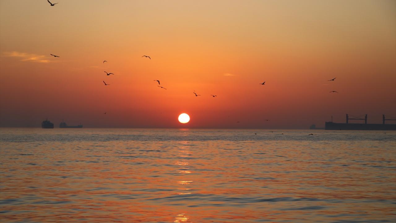Tekirdağ'da gün doğumu güzel görüntüler oluşturdu.