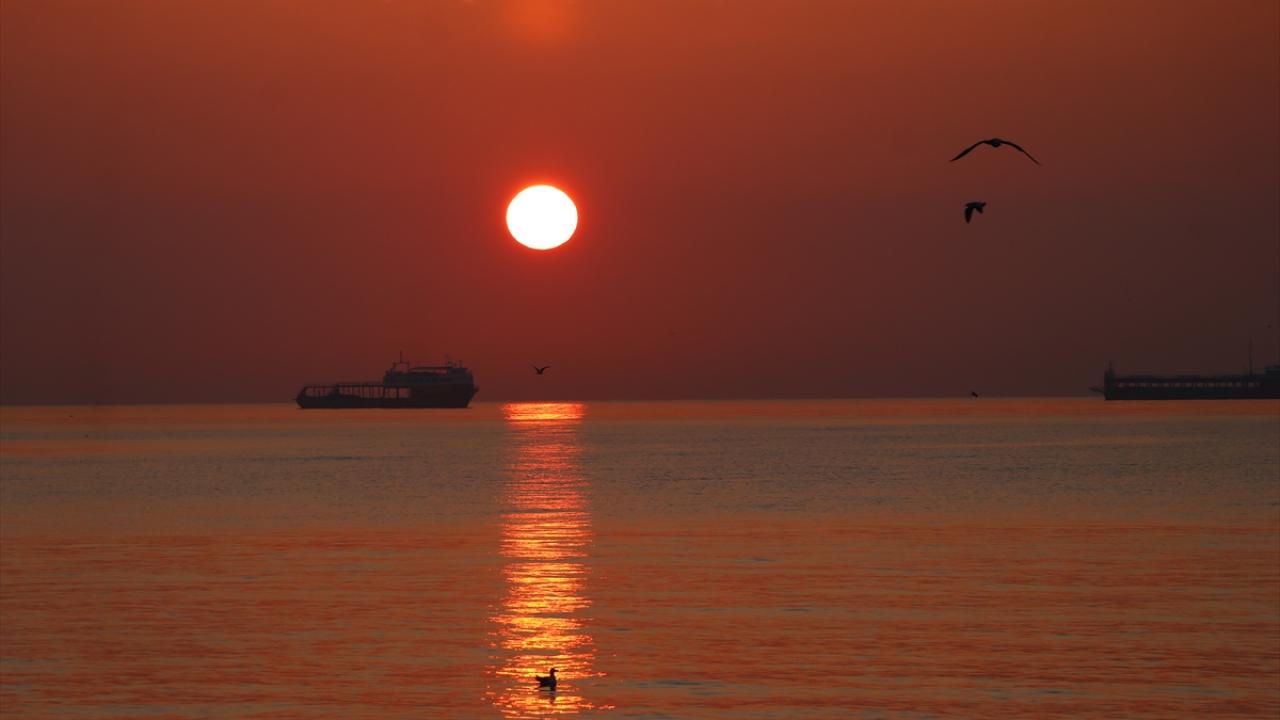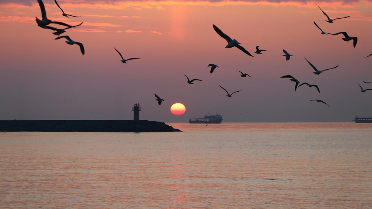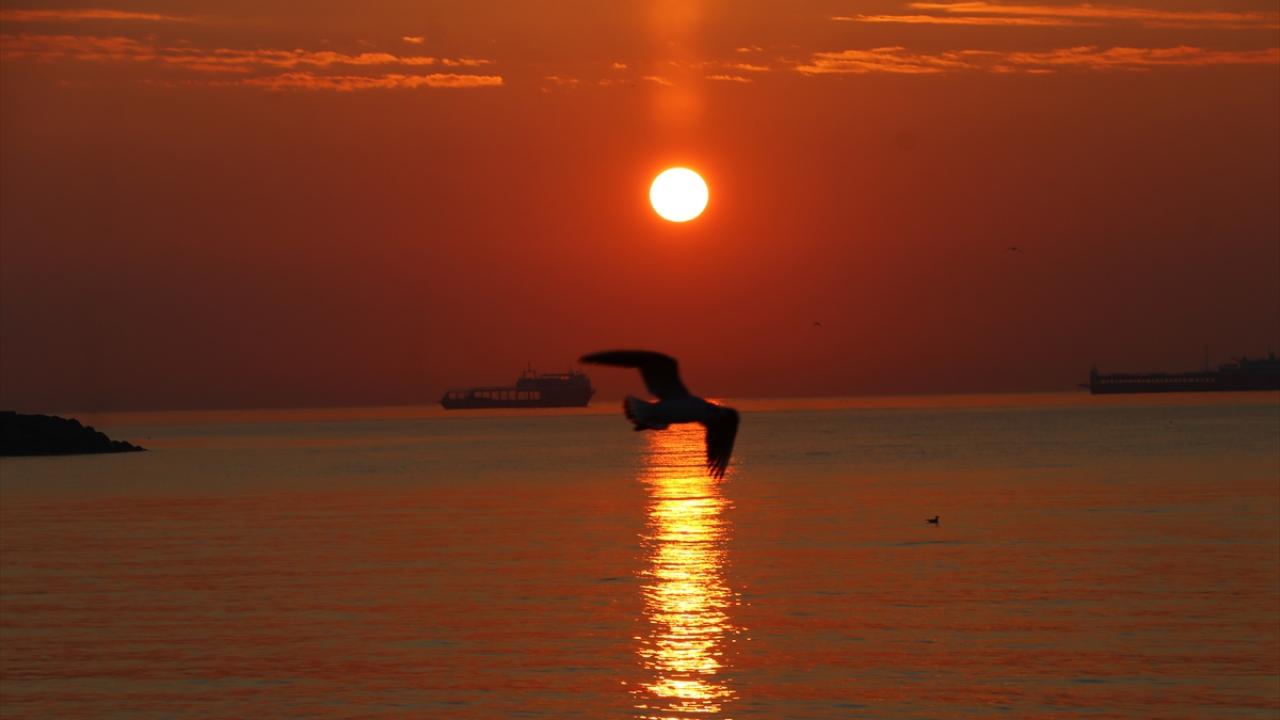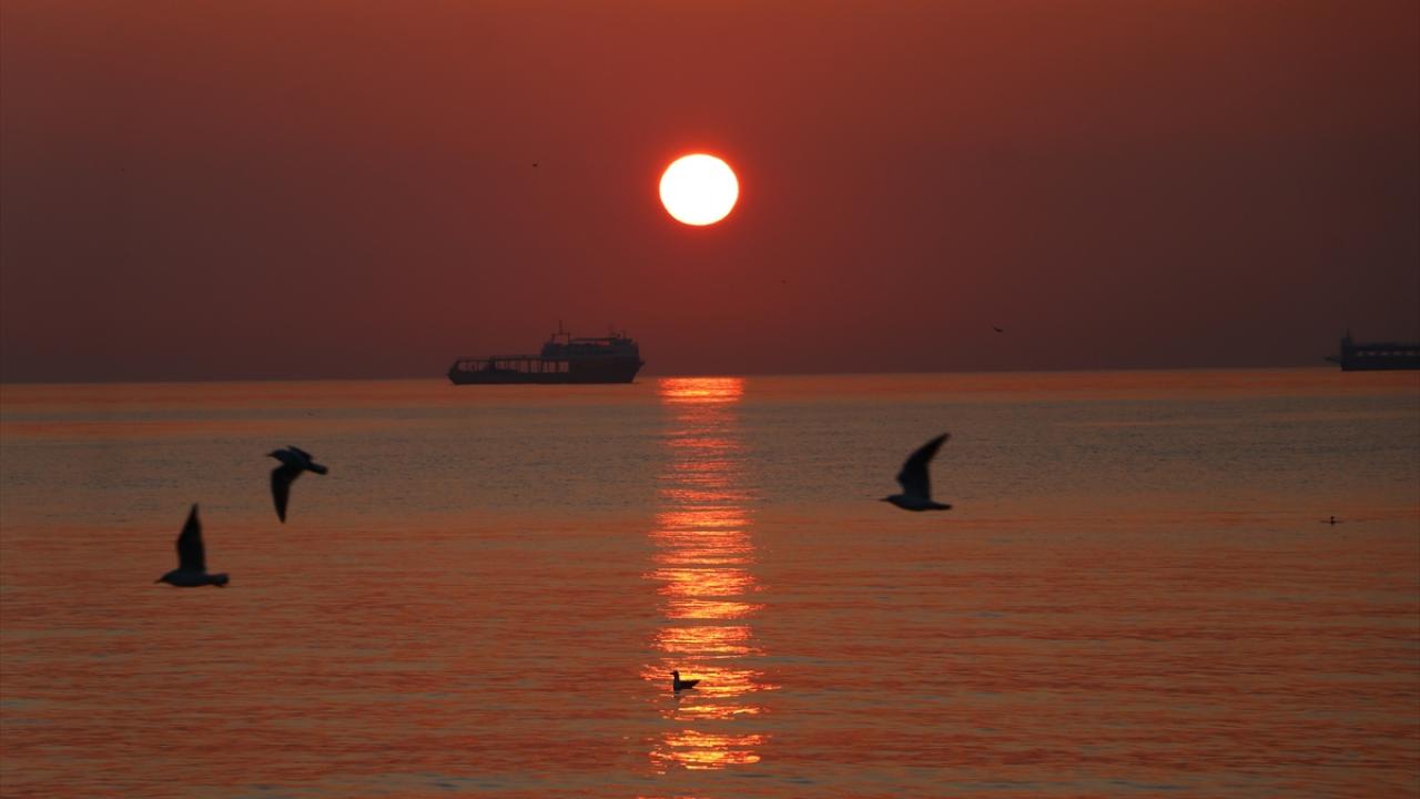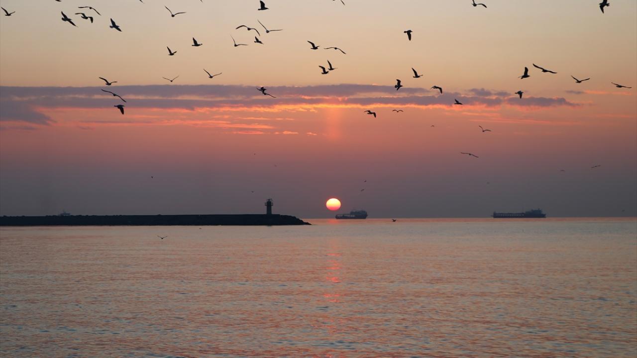 Tekirdağ'da gün doğumu sahilde martılarla birlikte güzel görüntüler oluşturdu.