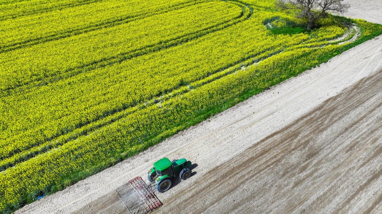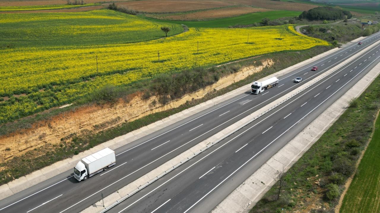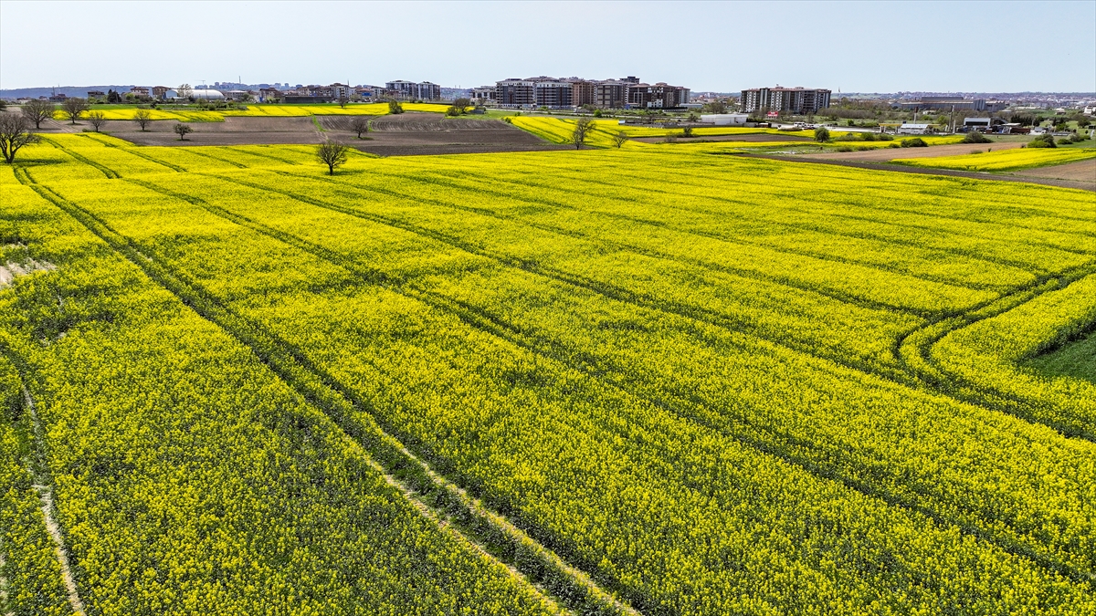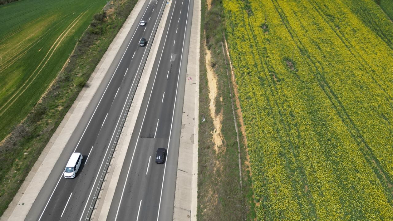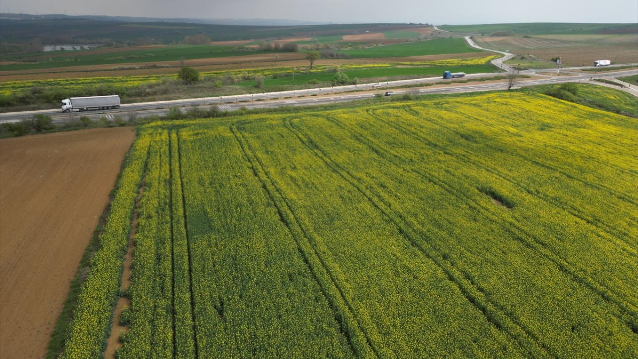 Tekirdağ-İstanbul ve Tekirdağ-Çanakkale kara yolu arasındaki tarlalarda ekili kanolalar çiçek açtı.