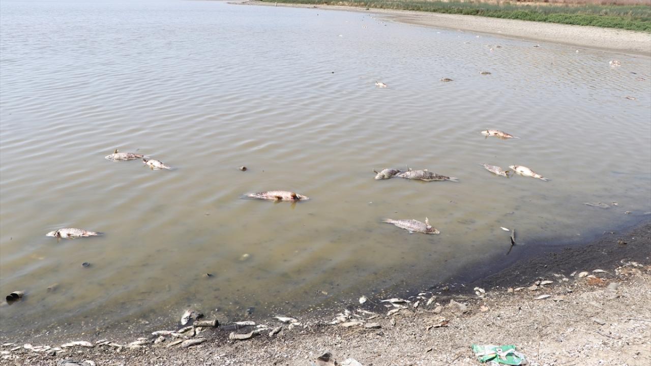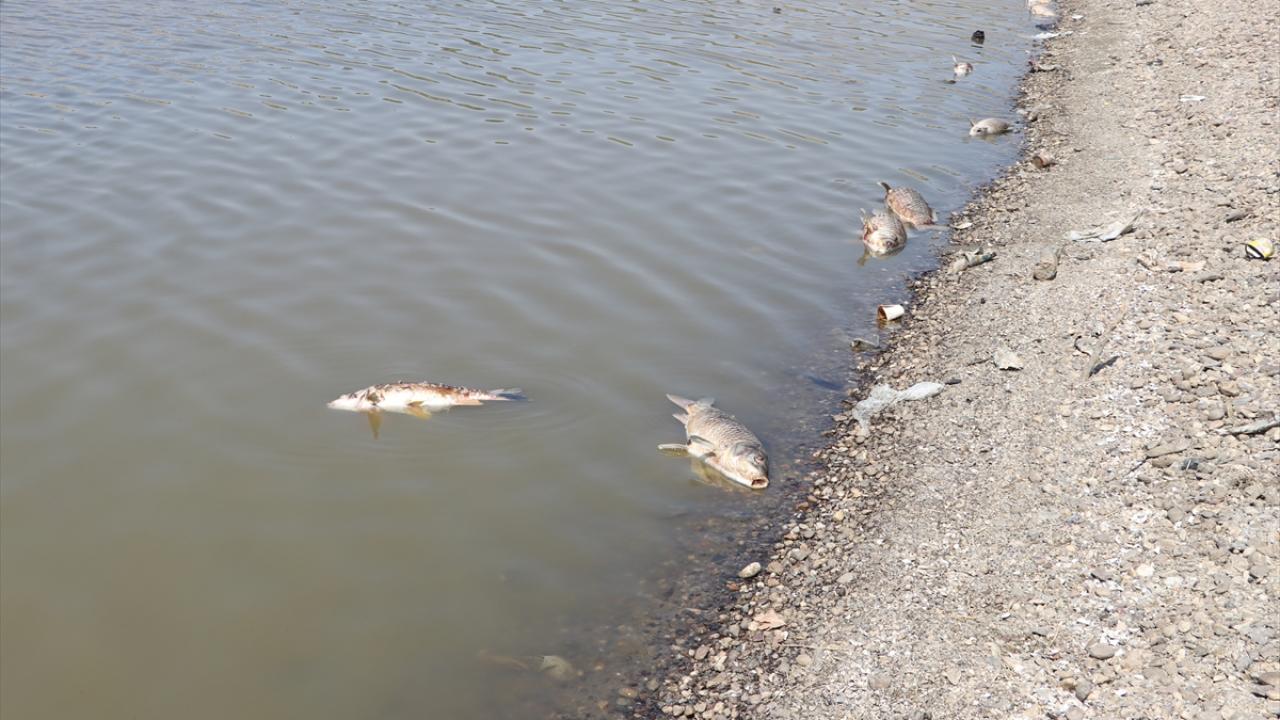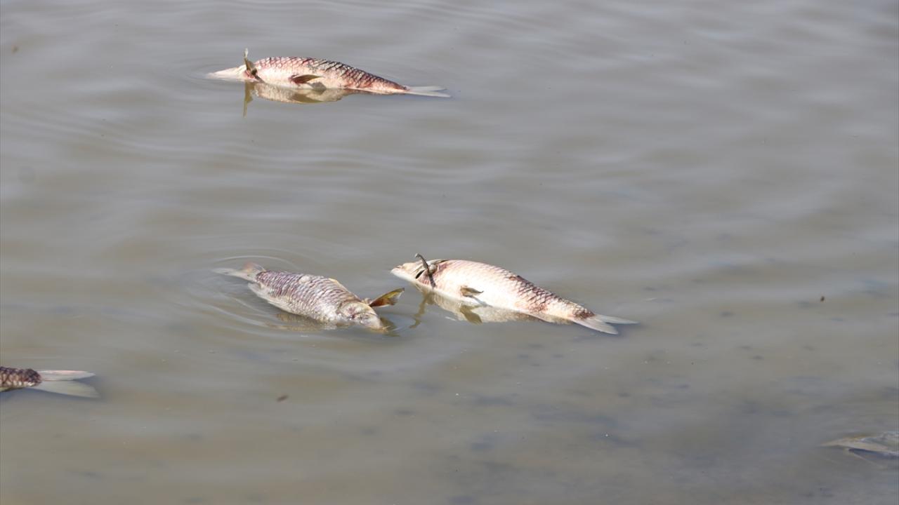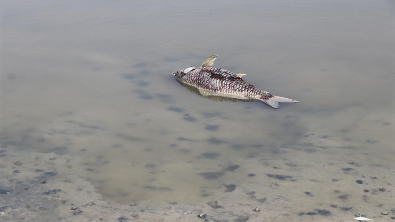Gölette oksijensiz kalan balıklar telef olarak kıyıya vurdu.