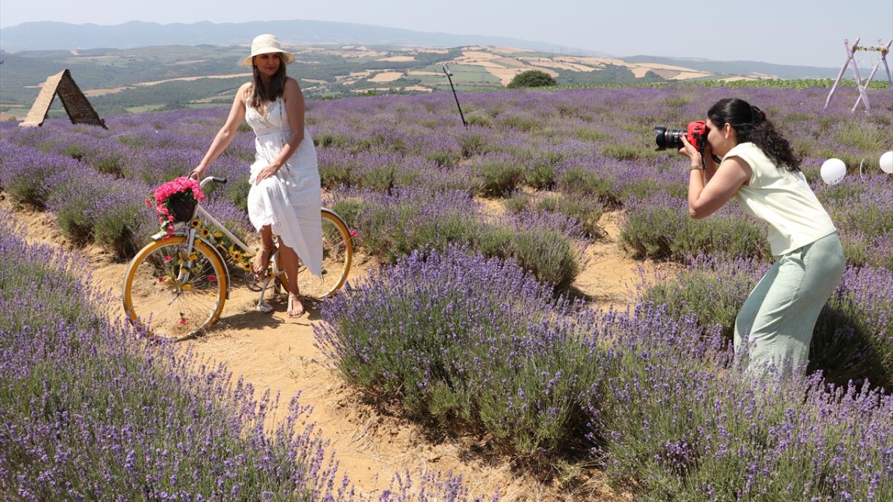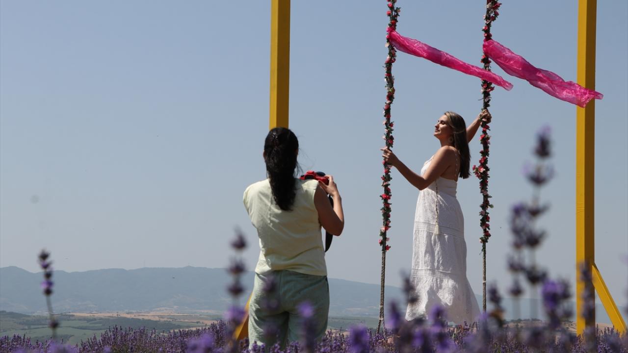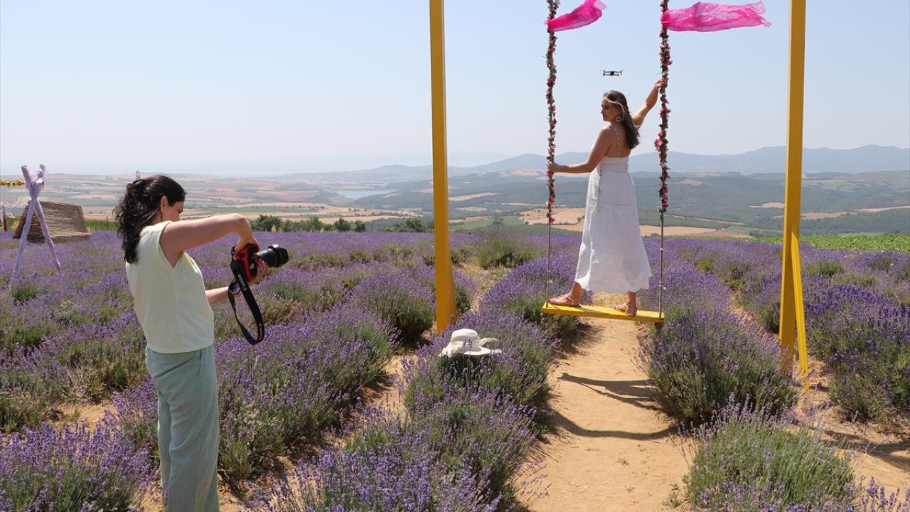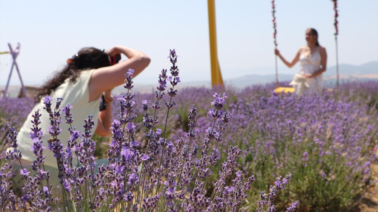 Ziyaretçilerin yanı sıra fotoğraf tutkunları da lavanta tarlalarında oluşturulan dekorlar önünde en güzel fotoğrafı çekmek için bölgeye geliyor.