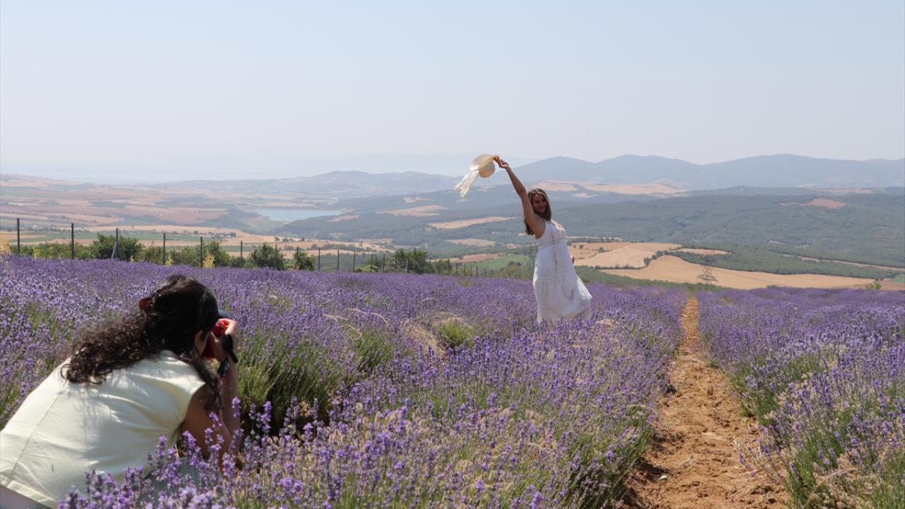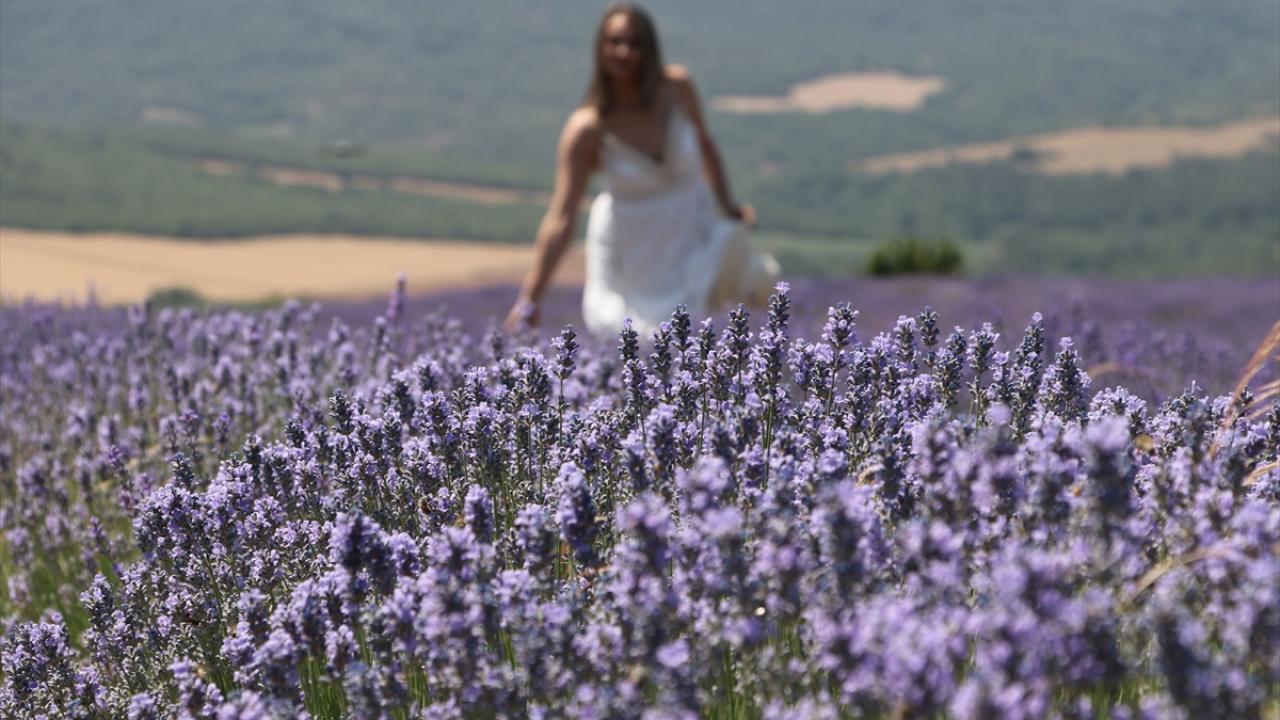 Çok sayıda vatandaş doğal stüdyo olarak kullanılan lavanta tarlalarında doğa ile iç içe zaman geçiriyor.