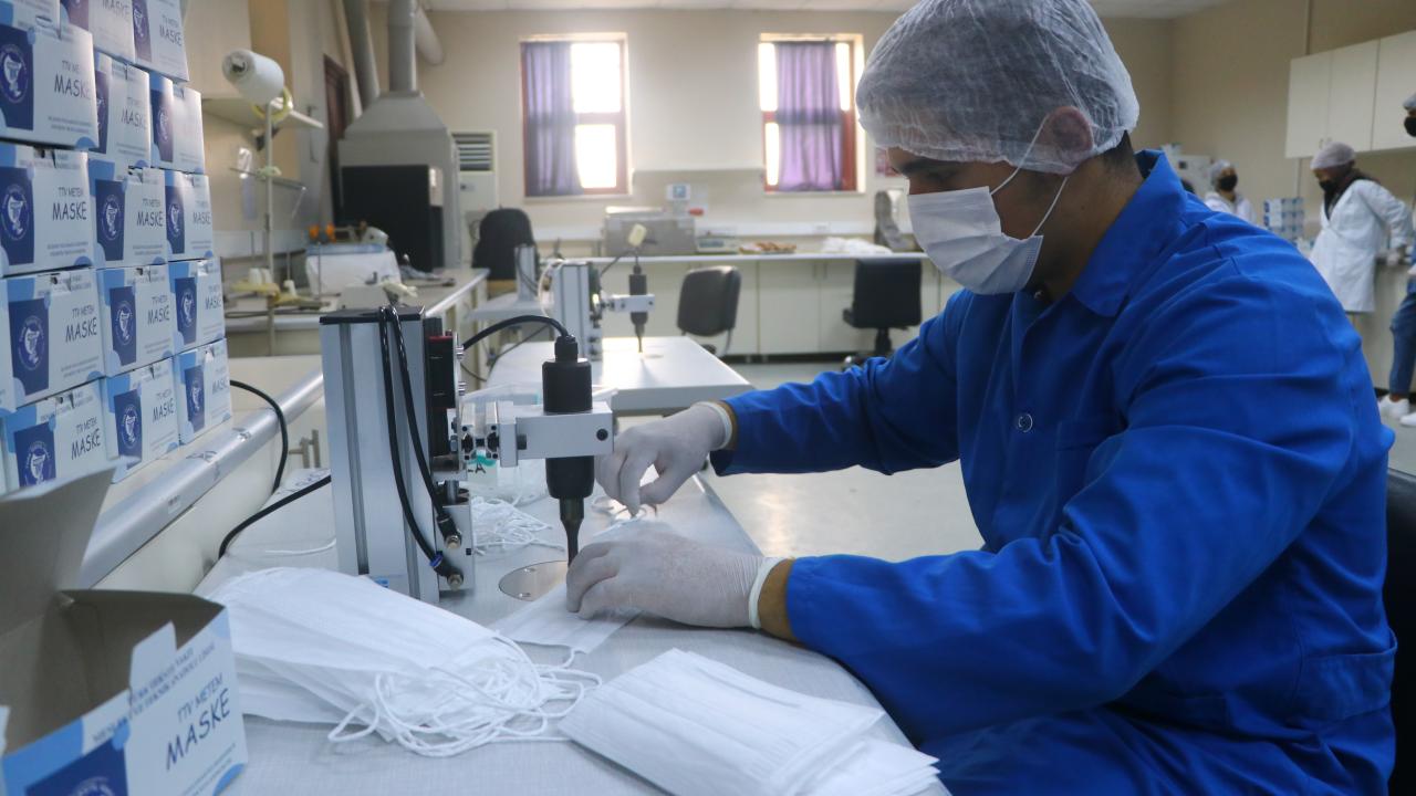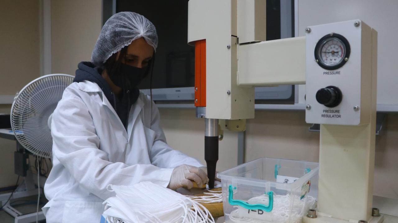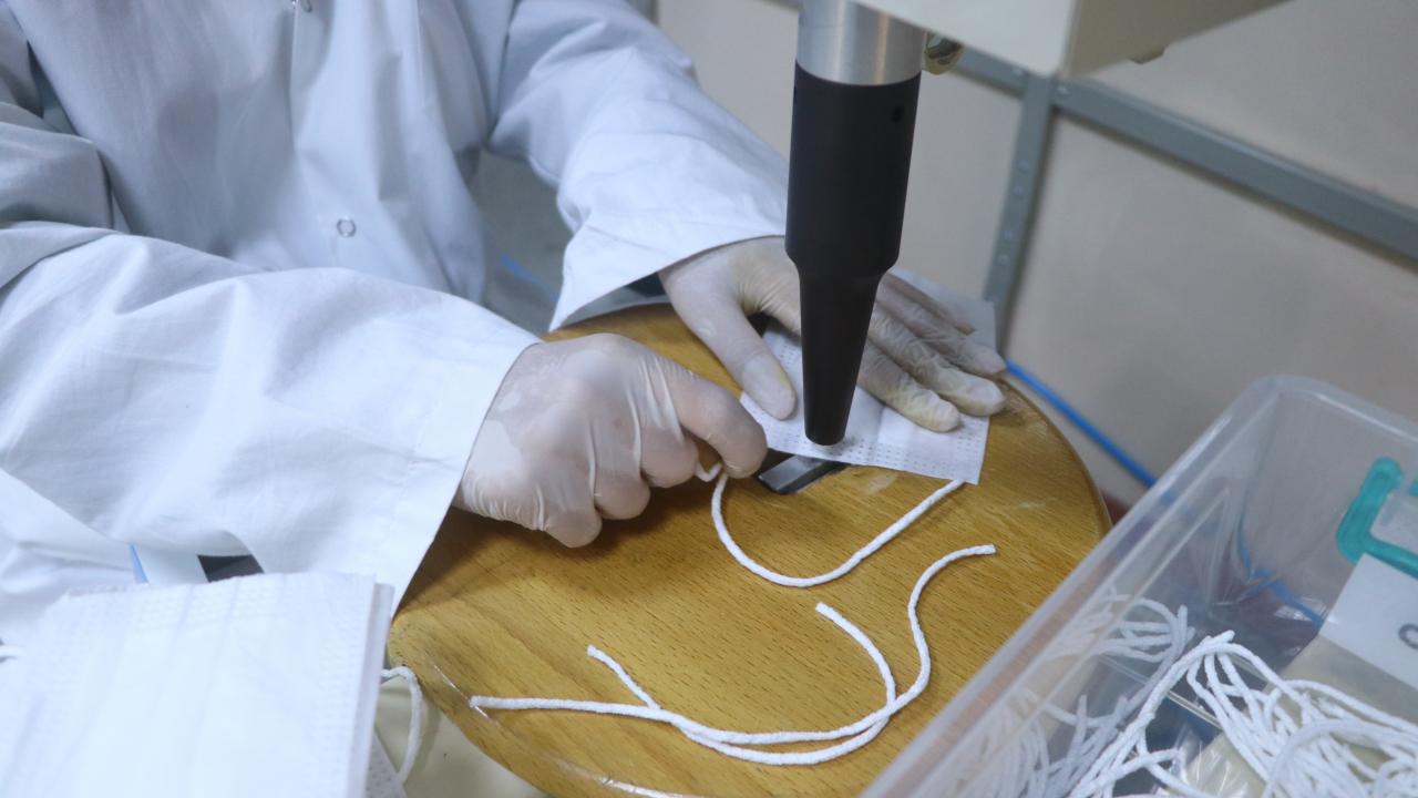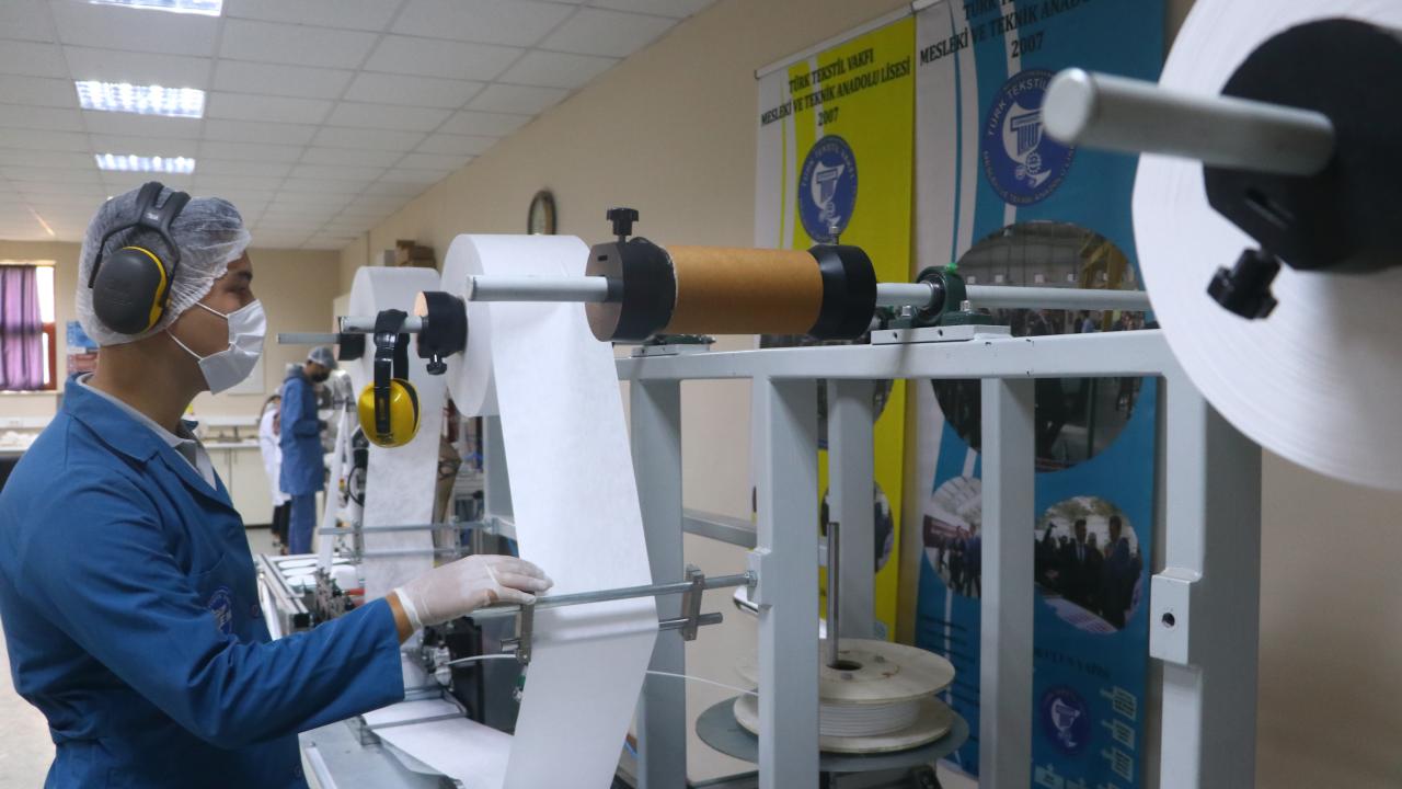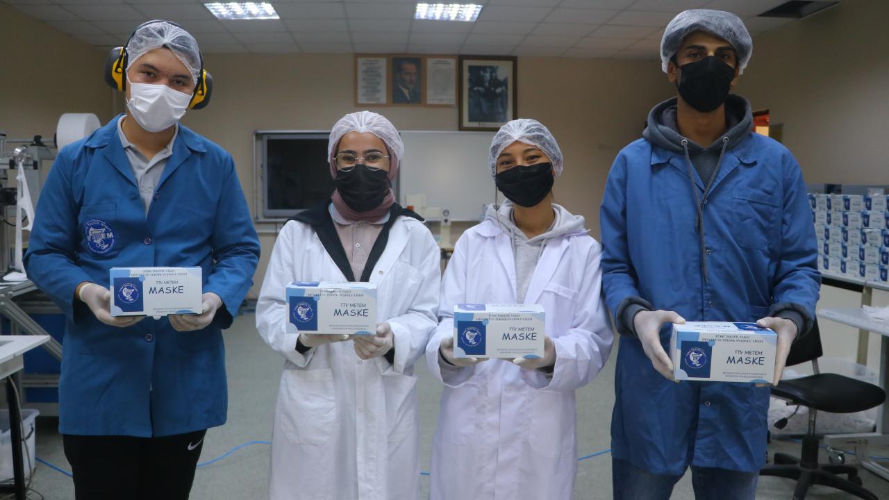 Öğrenciler, öğretmenleri gözetiminde çeşitli işlemlerden geçirdikleri özel bir kumaştan 3 katlı 100 bin maske üretti.